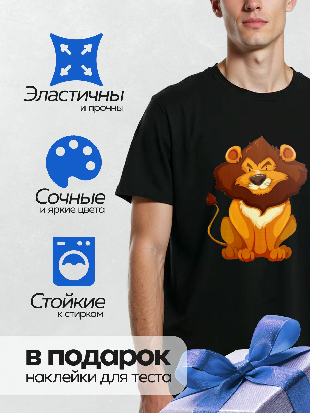 Дизайн: Мультяшный лев с яркой гривой и добродушным выражением лица. — идеально подходит для декора и восстановления одежды.