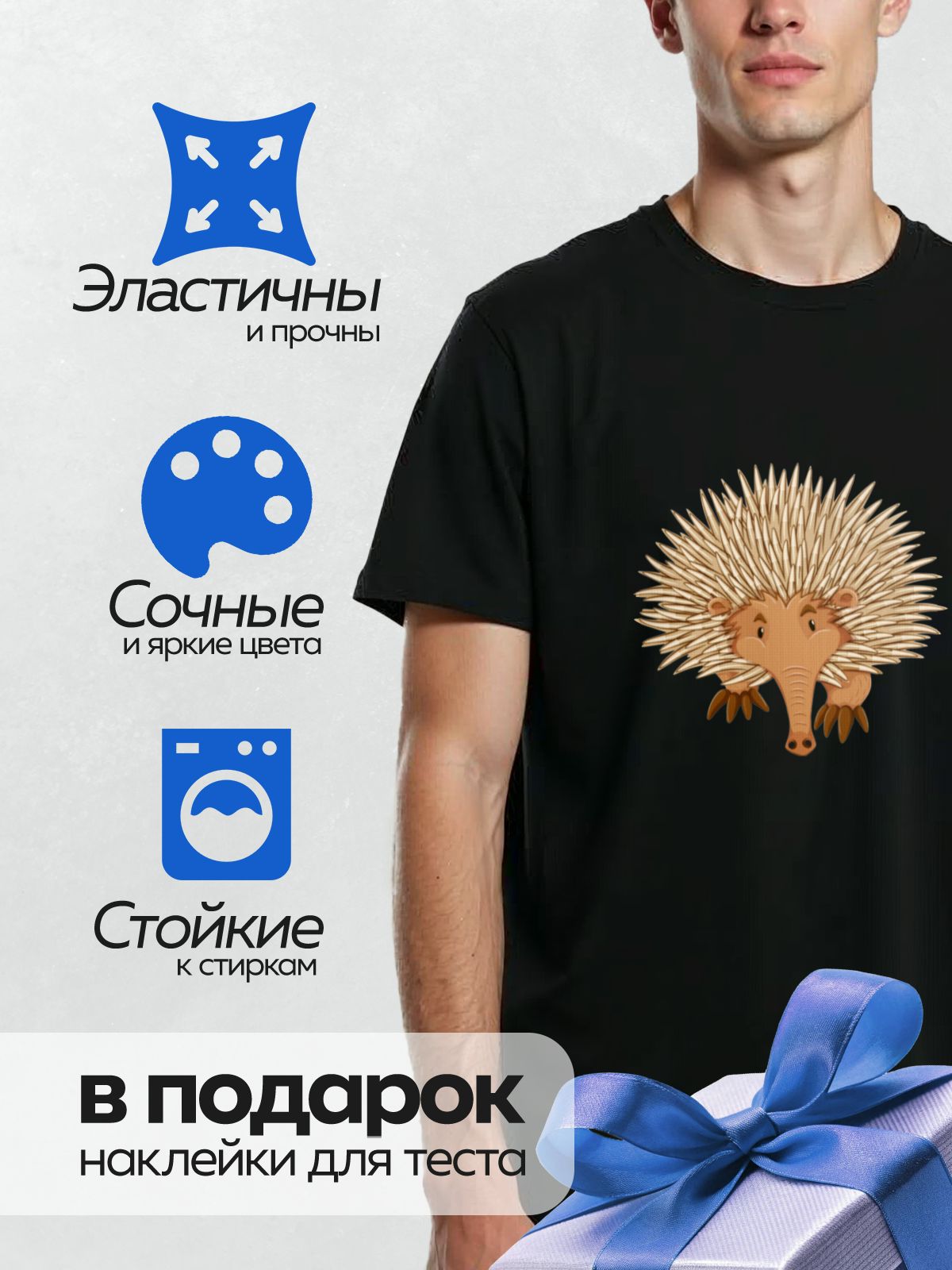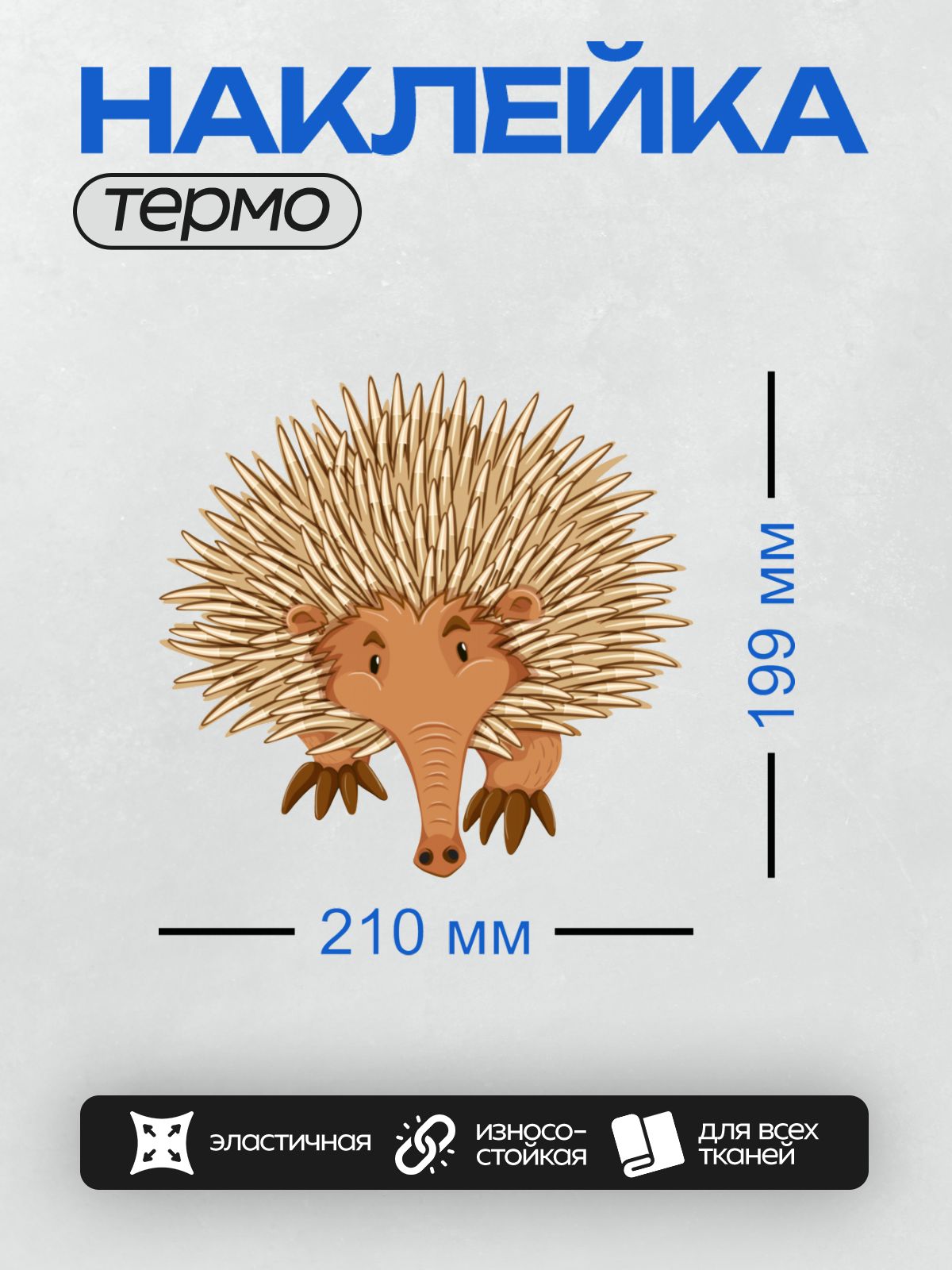 Дизайн: Мультяшный ехидна с длинными иглами и добрым взглядом. — идеально подходит для декора и восстановления одежды.
