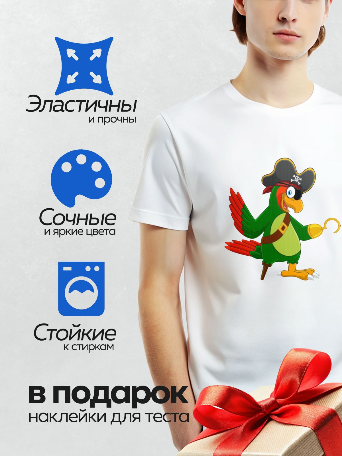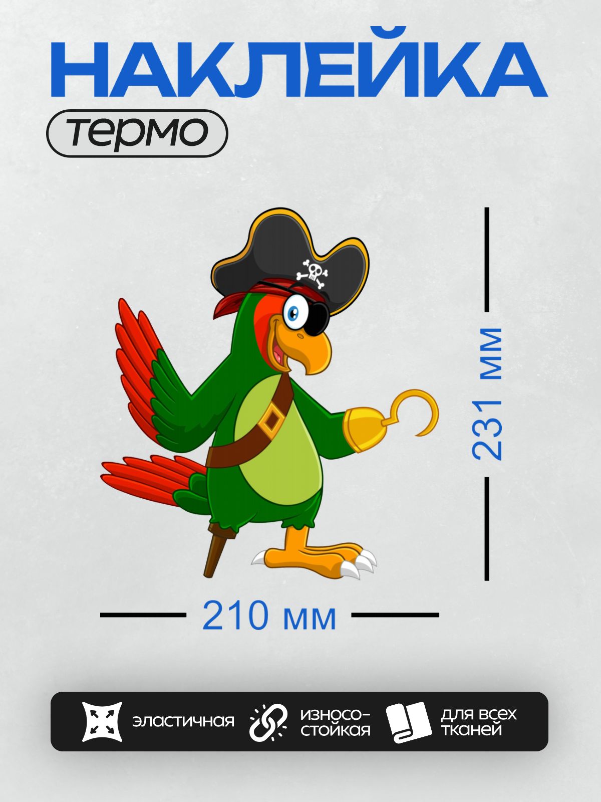 Термонаклейка на одежду DTF / Мультяшный попугай-пират с крюком и шляпой.