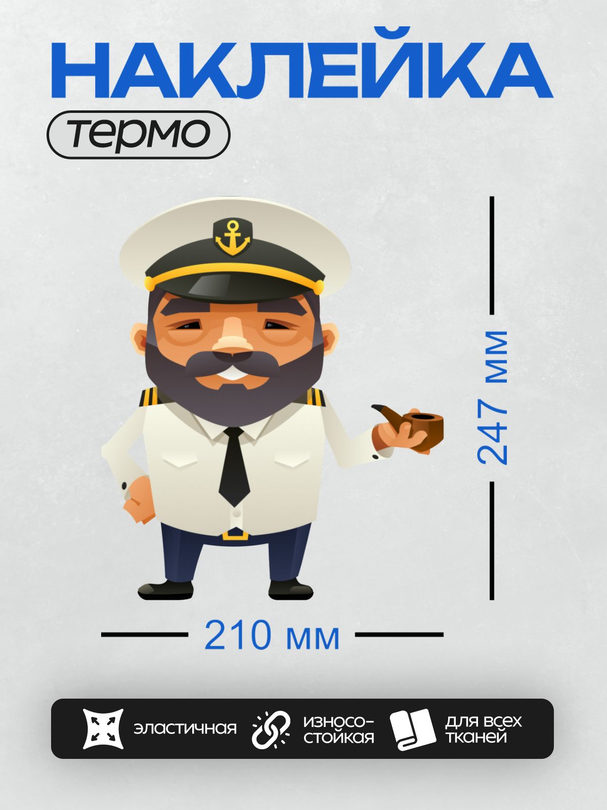 Дизайн: Мультяшный капитан корабля с бородой и трубкой. — идеально подходит для декора и восстановления одежды.
