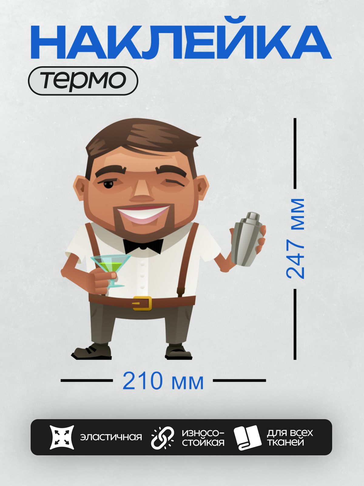 Дизайн: Мультяшный бармен с коктейлем и шейкером. — идеально подходит для декора и восстановления одежды.