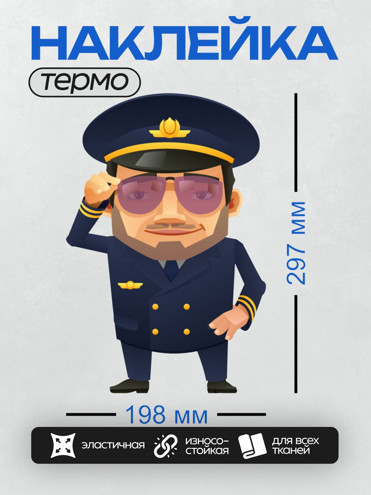 Дизайн: Мультяшный пилот в форме и очках. — идеально подходит для декора и восстановления одежды.