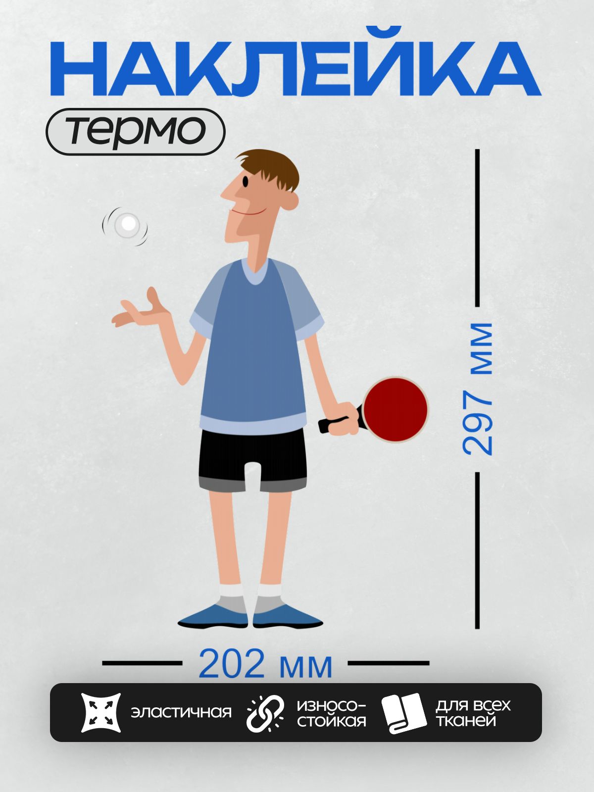 Дизайн: Мультяшный мужчина играет в настольный теннис. — идеально подходит для декора и восстановления одежды.
