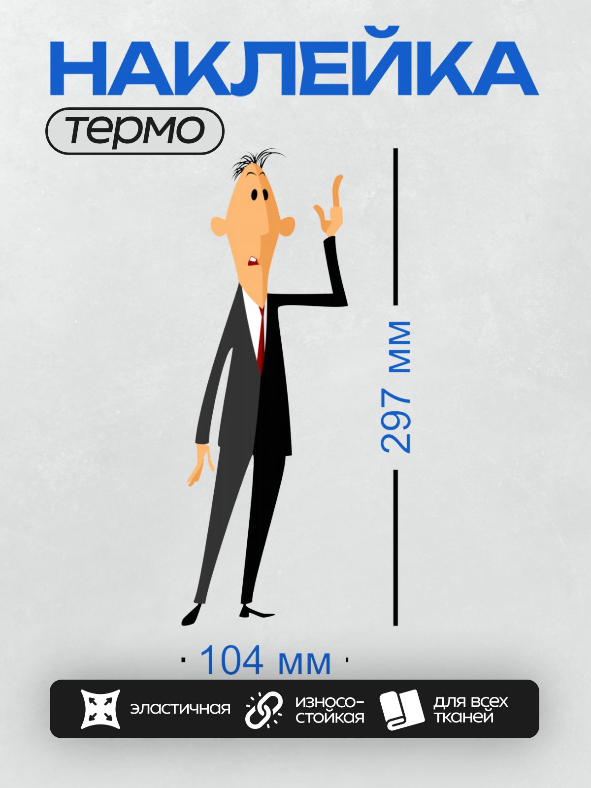 Термонаклейка на одежду DTF / Мультяшный мужчина в костюме с красным галстуком.