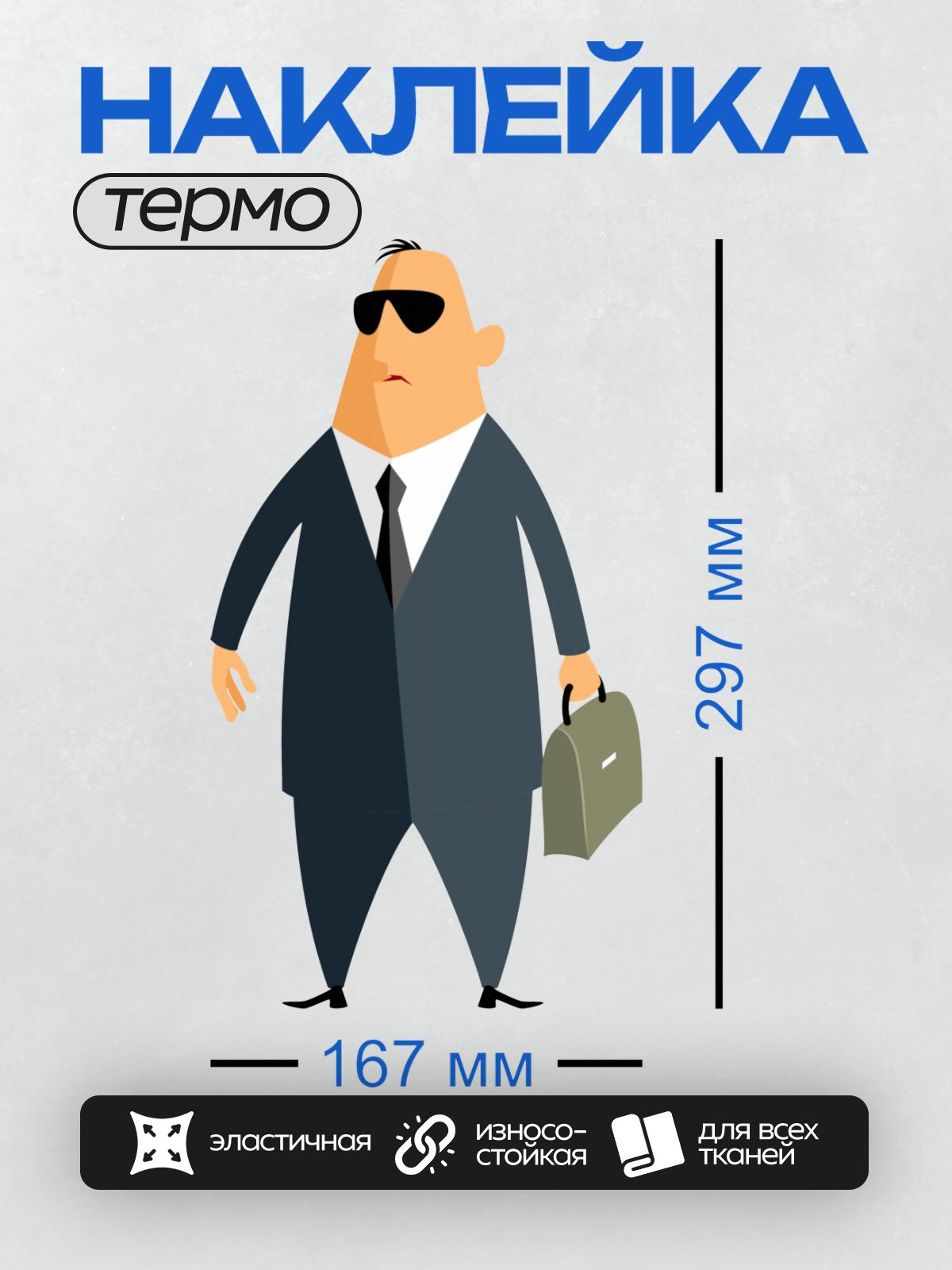 Дизайн: Мультяшный бизнесмен в костюме с портфелем. — идеально подходит для декора и восстановления одежды.