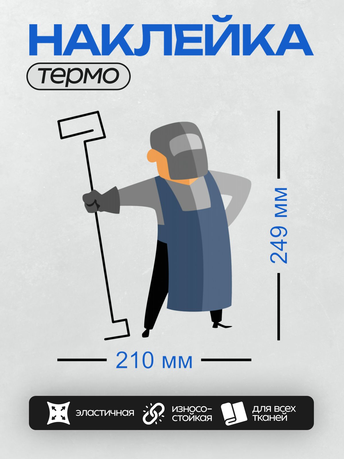 Дизайн: Мультяшный сварщик в маске с инструментом. — идеально подходит для декора и восстановления одежды.