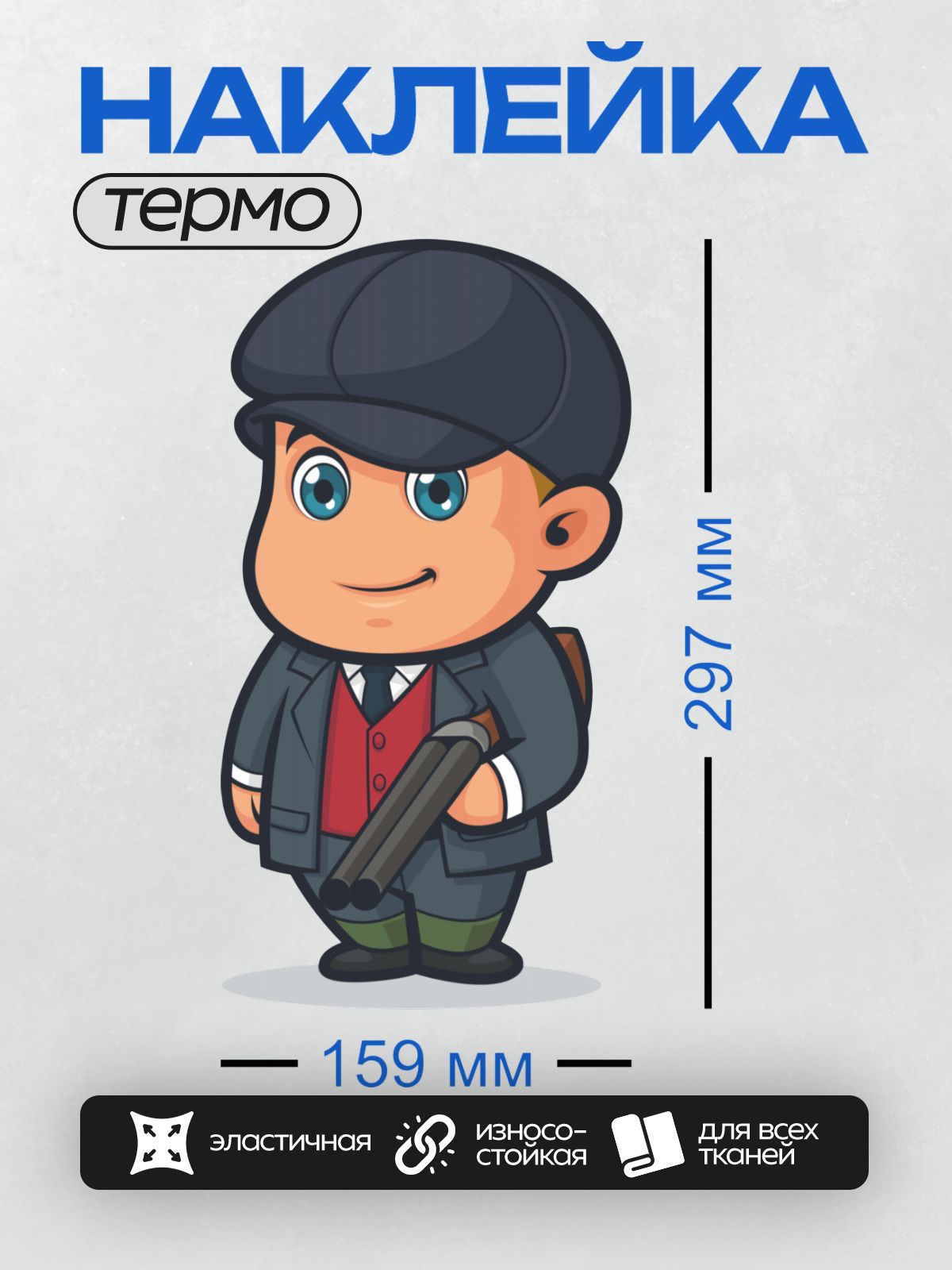 Дизайн: Мультяшный мужчина в костюме, шляпе и с ружьём. — идеально подходит для декора и восстановления одежды.