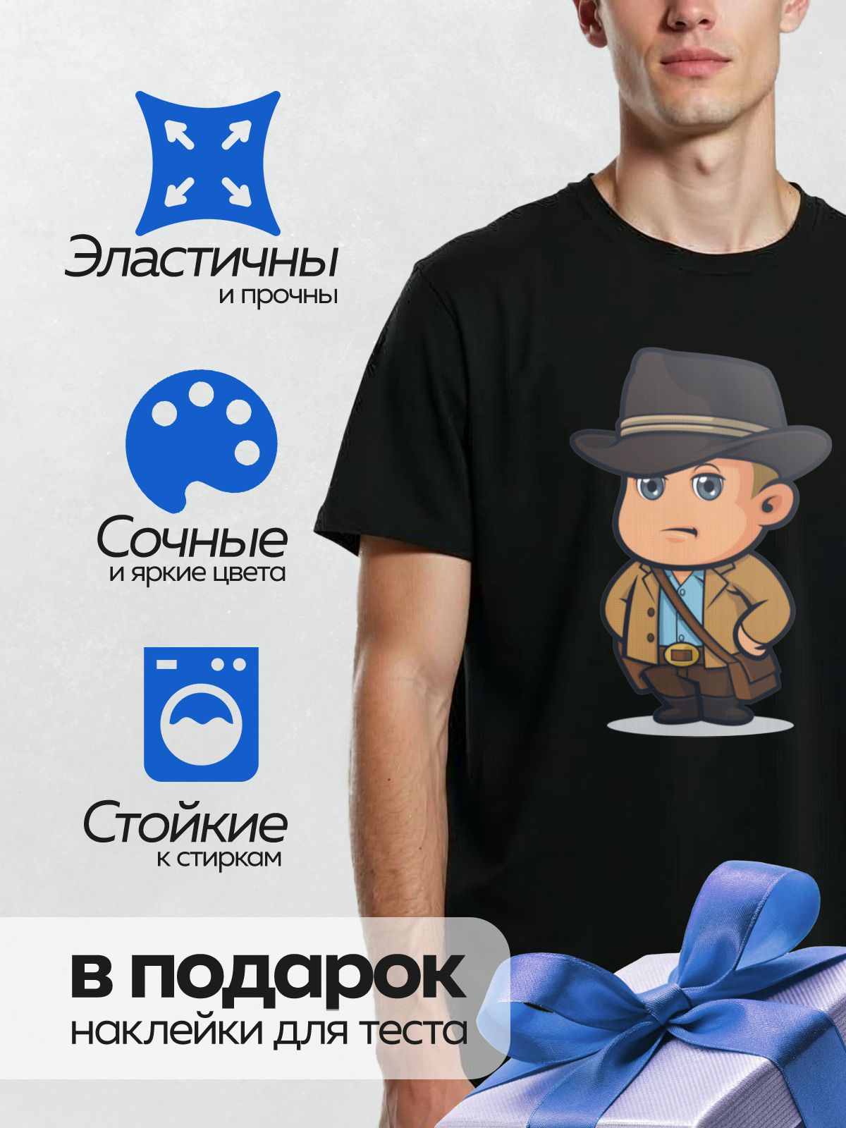 Термонаклейка DTF легко наносится в домашних условиях: вам понадобится только утюг и ровная поверхность. Благодаря качественной технологии печати рисунок не трескается, не отслаивается и сохраняет цвет даже после многократных стирок.