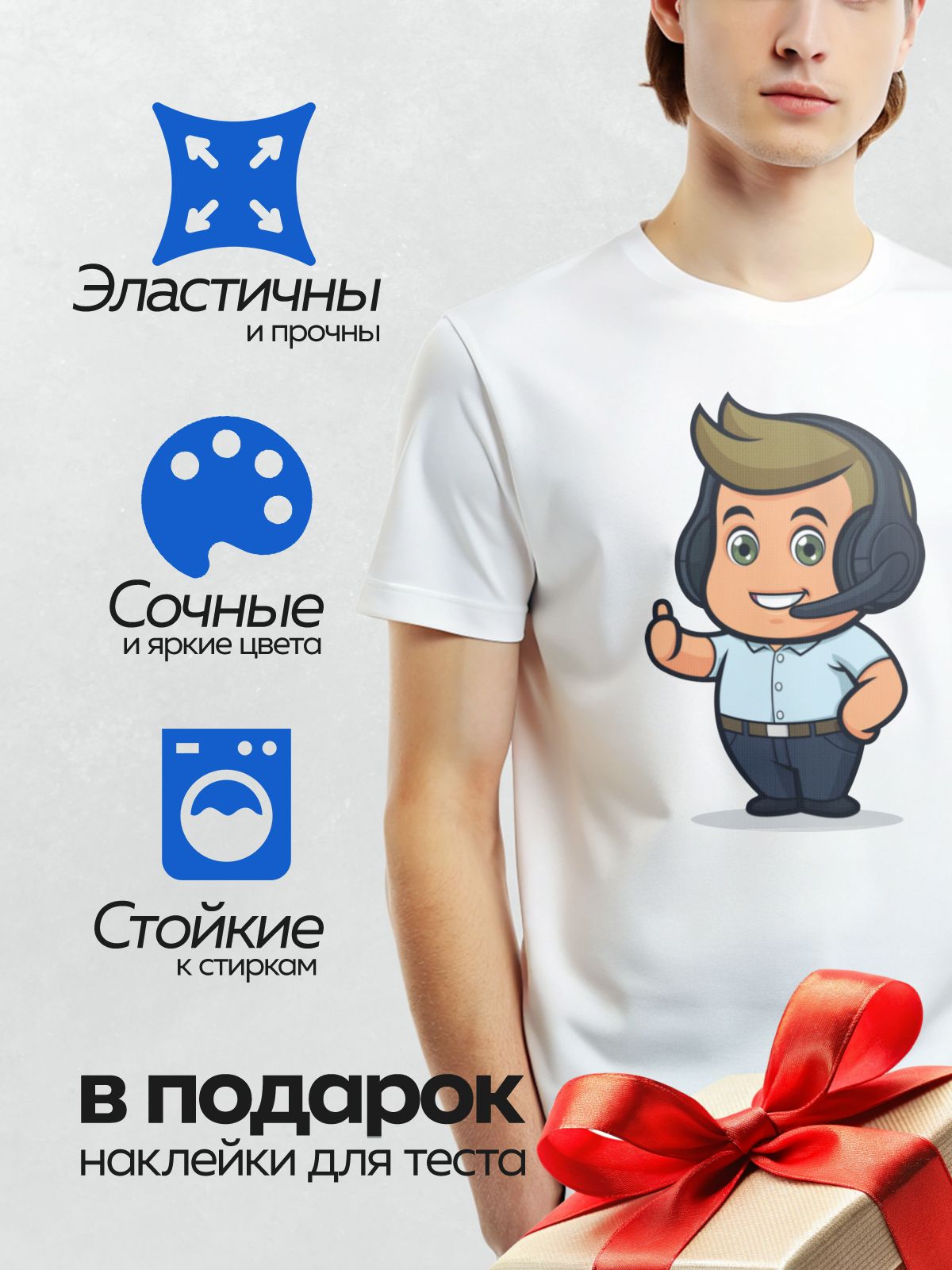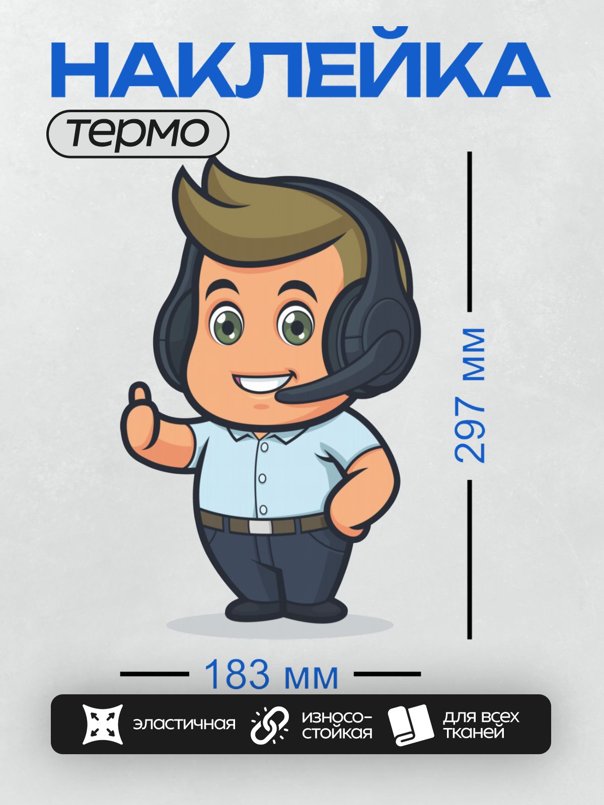 Термонаклейка на одежду DTF / Мультяшный оператор колл-центра в наушниках улыбается.