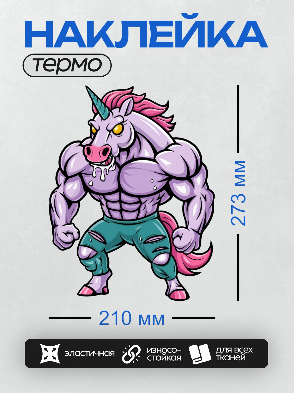 Дизайн: Мускулистый единорог с розовой гривой и рогом. — идеально подходит для декора и восстановления одежды.