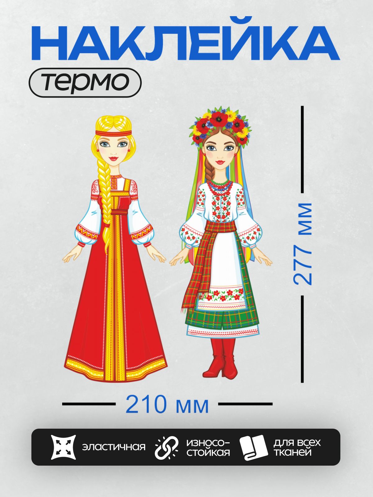 Дизайн: На изображении представлены два женских национальных костюма: русский и украинский. — идеально подходит для декора и восстановления одежды.