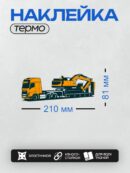 Дизайн: Оранжевый тягач перевозит экскаватор на платформе. — идеально подходит для декора и восстановления одежды.
