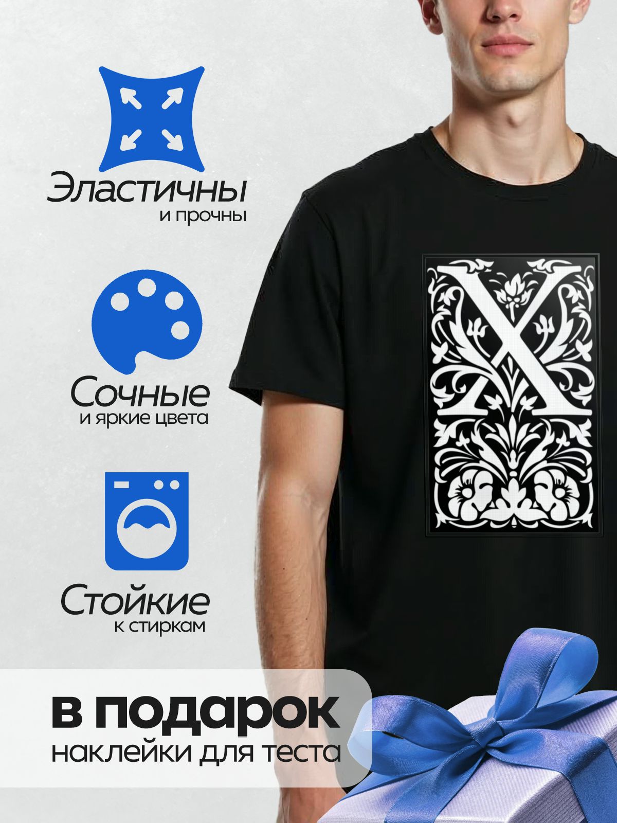 Термонаклейка на одежду DTF / Орнаментальный узор с переплетением букв “V” и “A”.