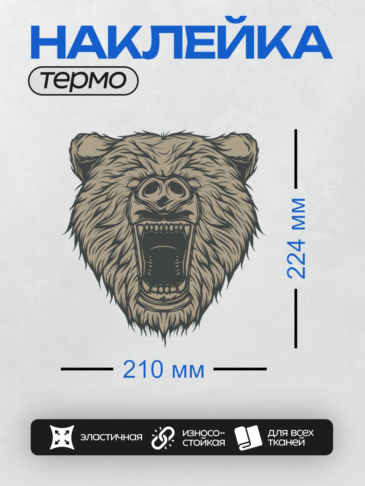 Дизайн: Оскал медведя, агрессивный и детализированный рисунок. — идеально подходит для декора и восстановления одежды.