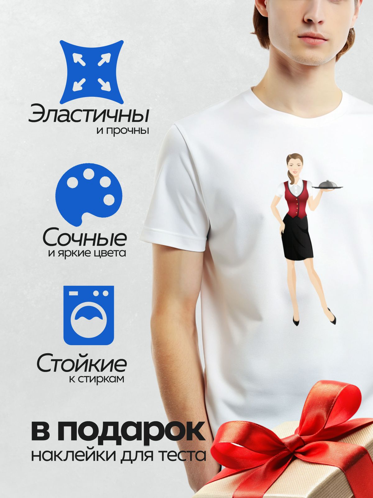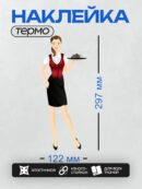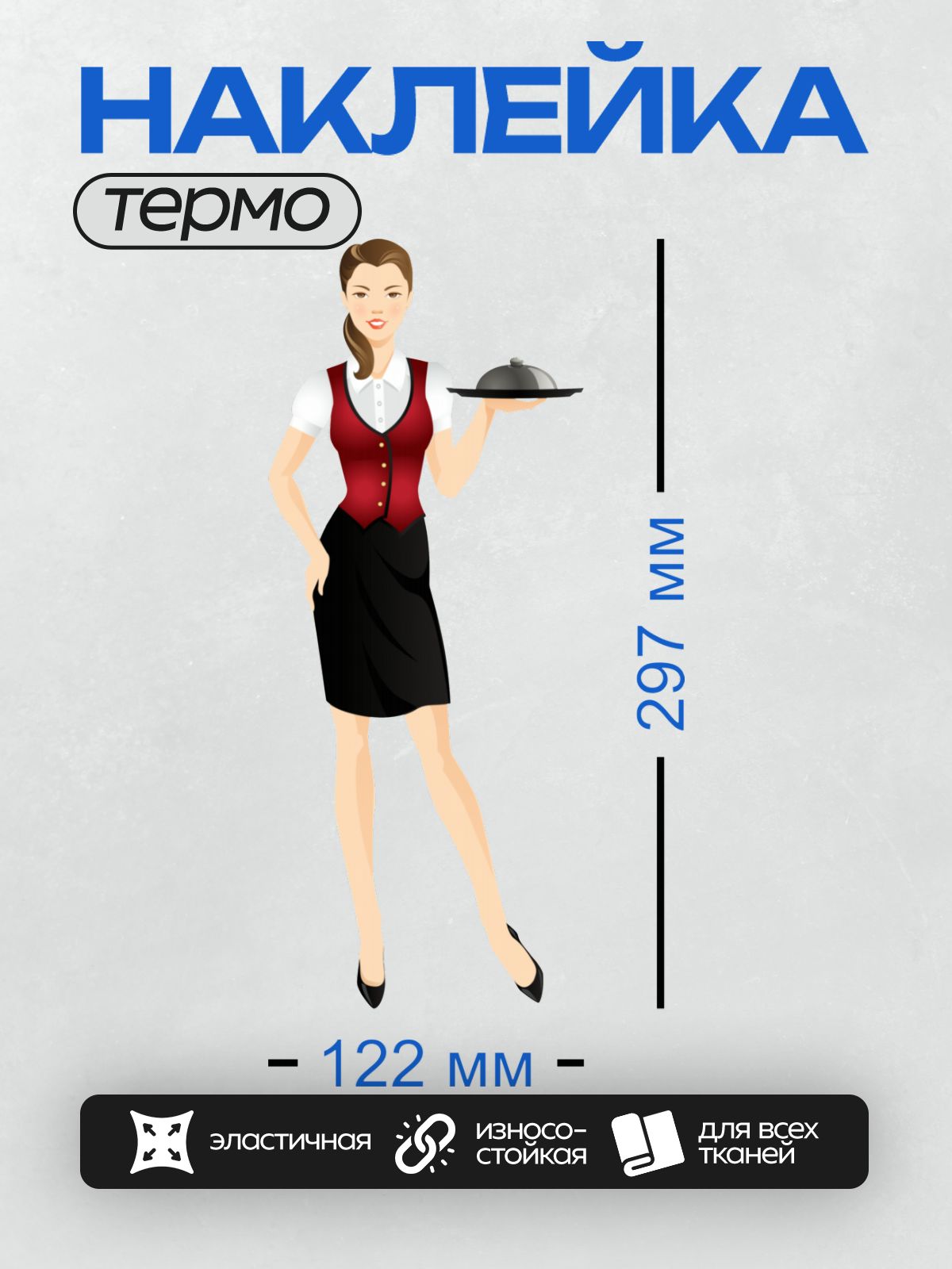 Термонаклейка на одежду DTF / Официантка в красной жилетке держит поднос.