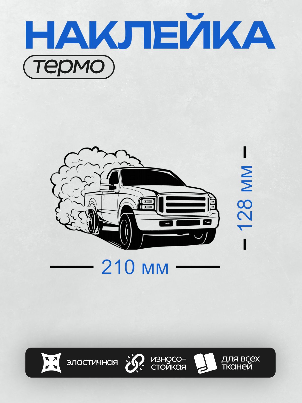 Дизайн: Пикап выпускает клубы дыма, стилизованный рисунок. — идеально подходит для декора и восстановления одежды.