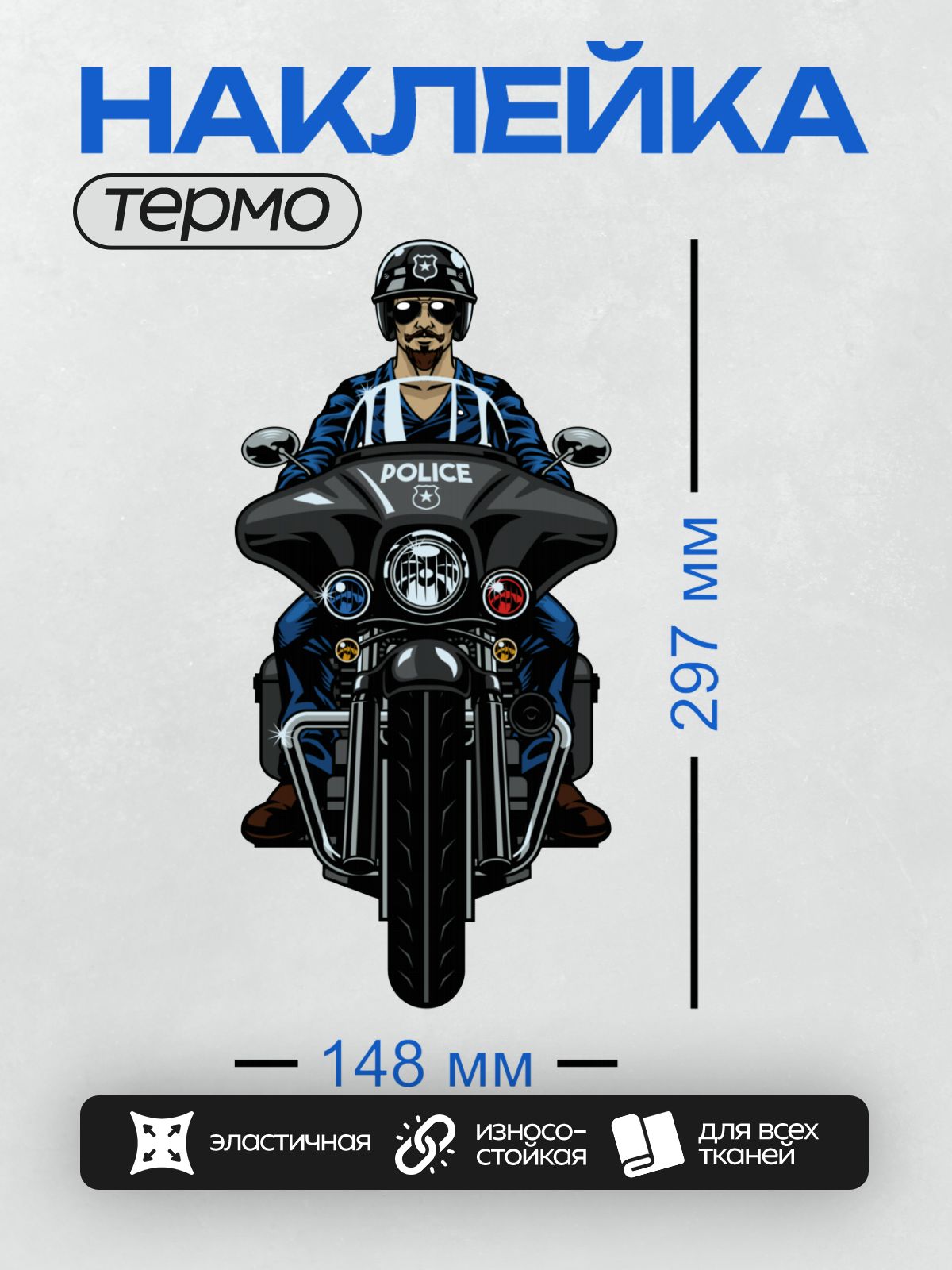 Дизайн: Полицейский на мотоцикле в стилизованной графике. — идеально подходит для декора и восстановления одежды.