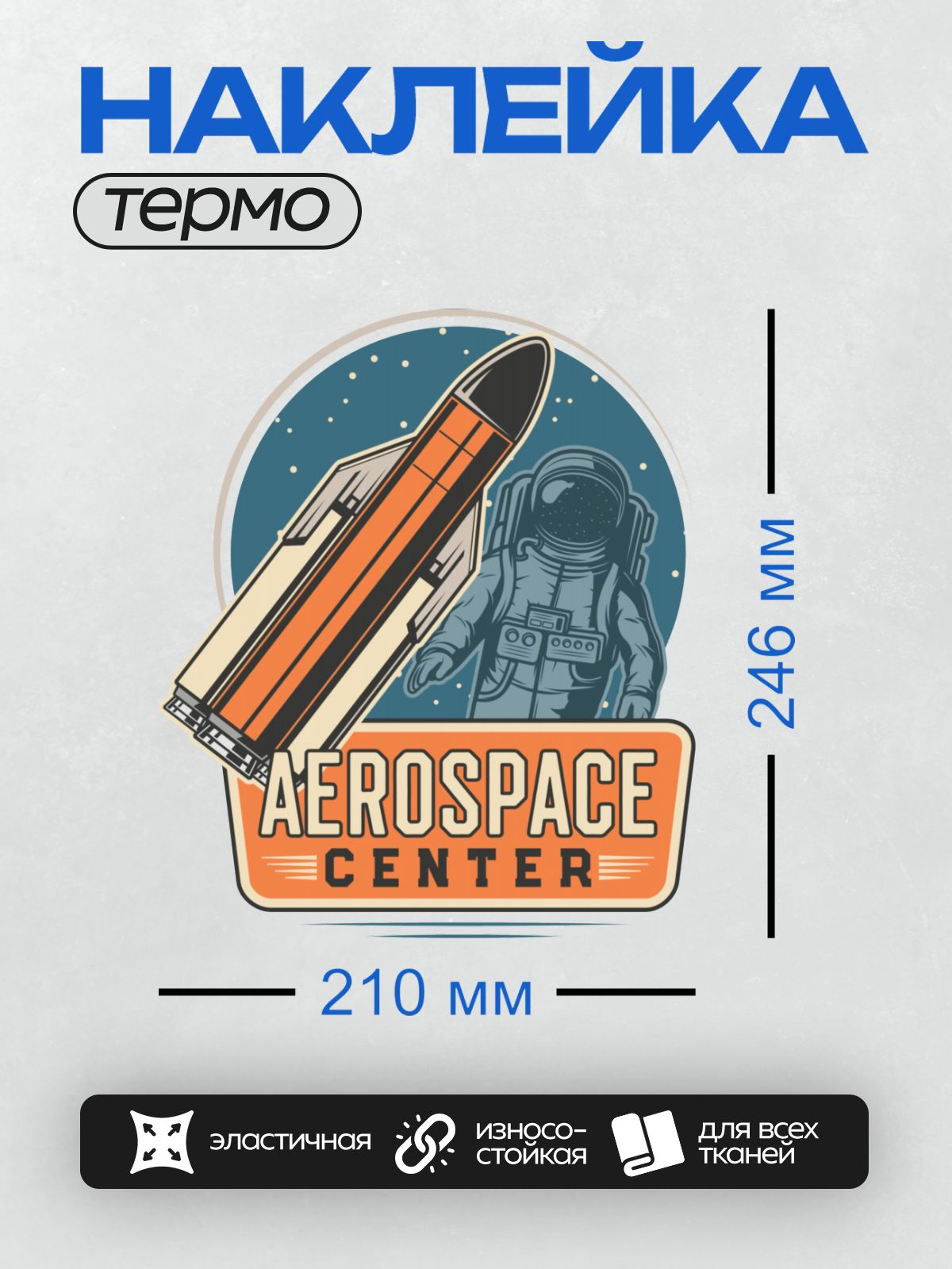 Дизайн: Ракета, космонавт, надпись “Aerospace Center”. — идеально подходит для декора и восстановления одежды.