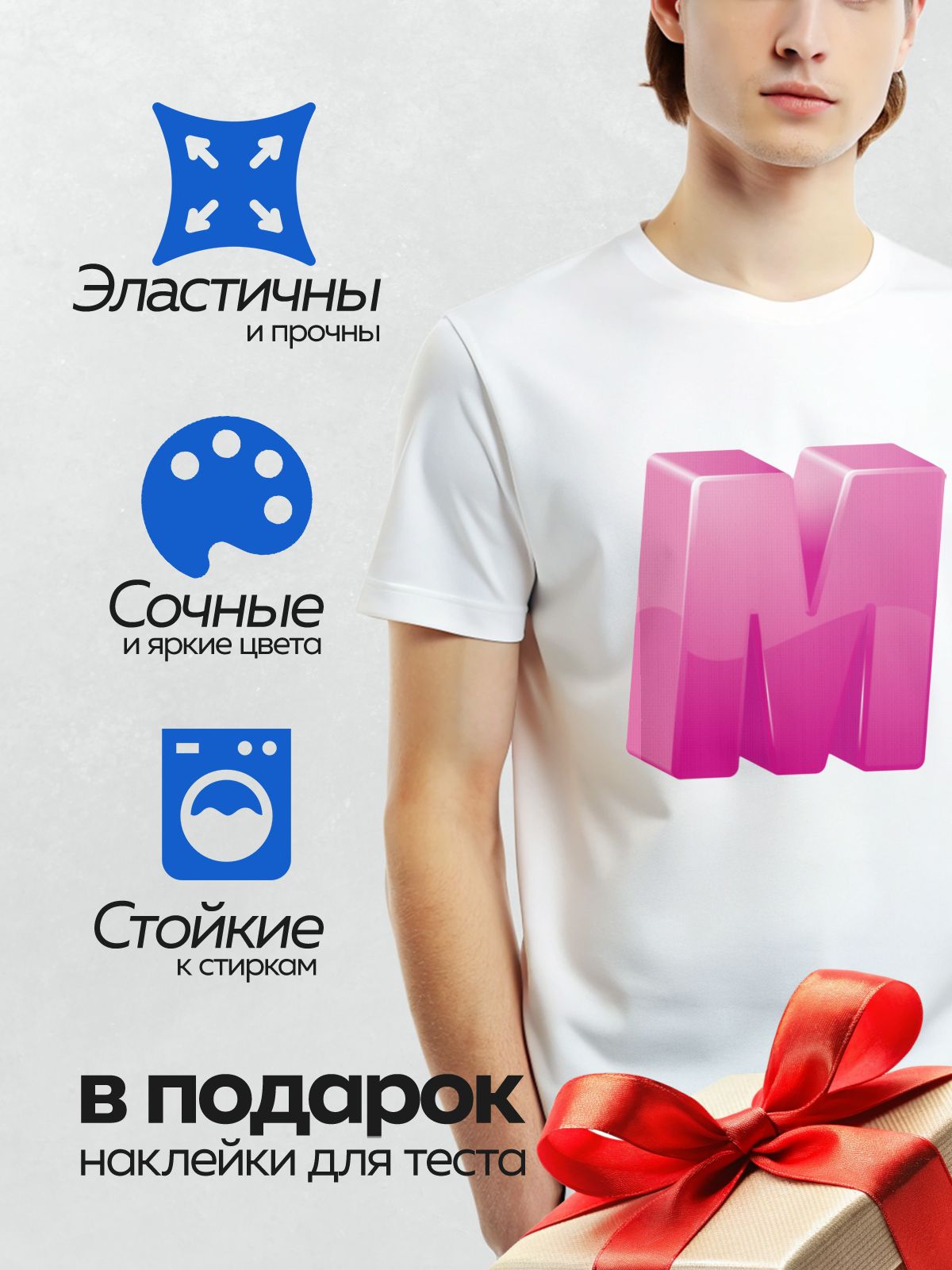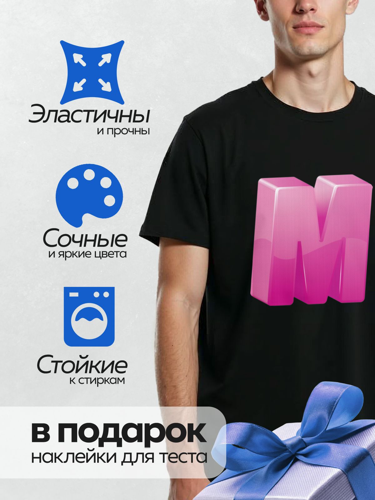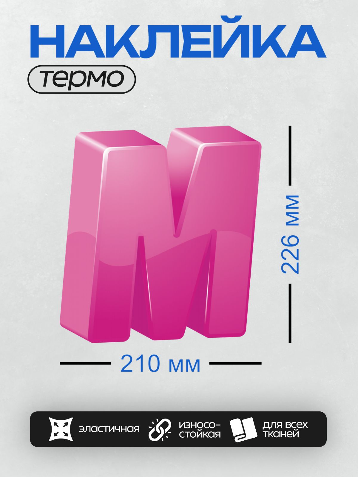 Термонаклейка на одежду DTF / Розовая буква “M” в 3D-стиле.