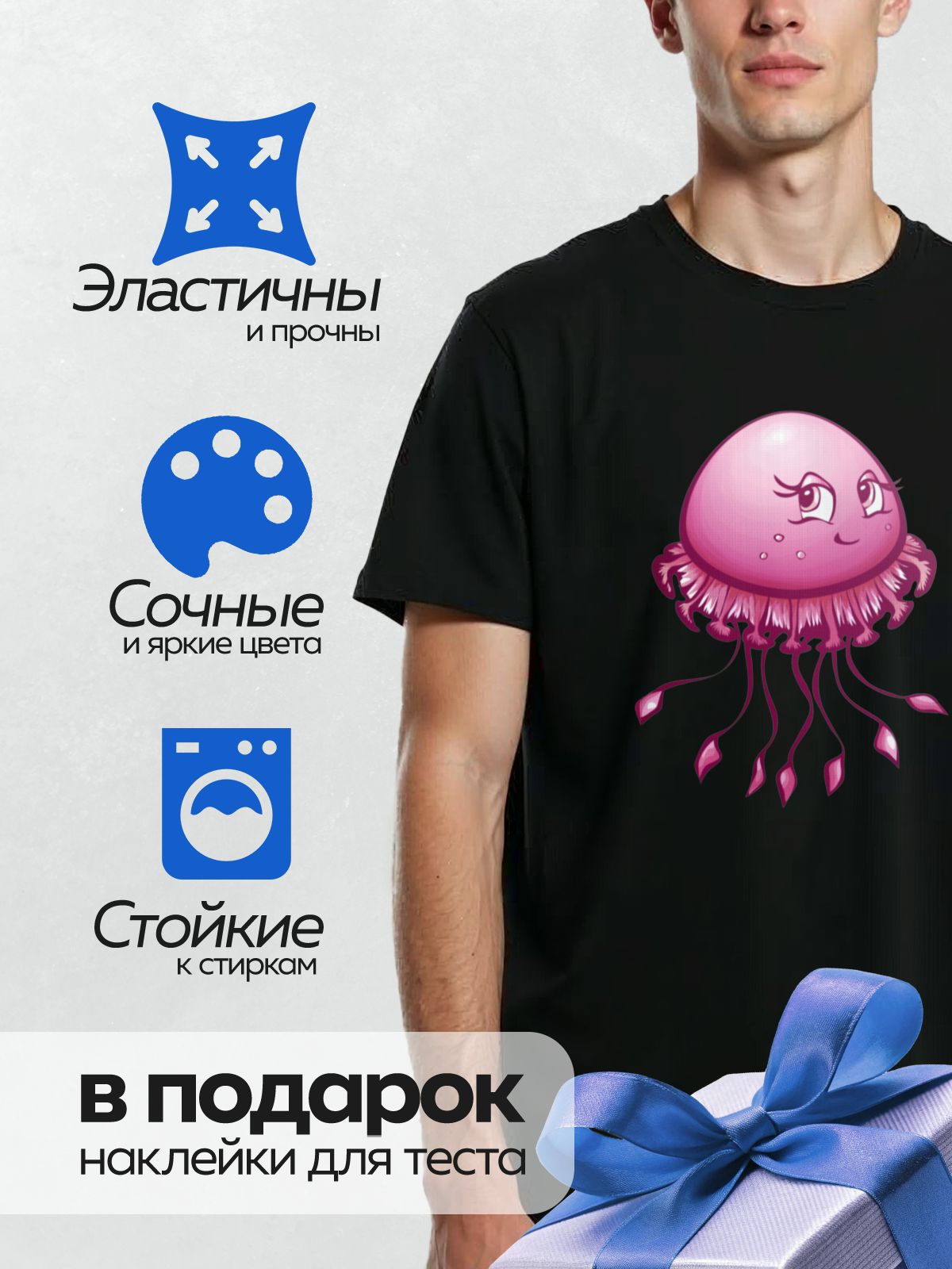 Термонаклейка DTF легко наносится в домашних условиях: вам понадобится только утюг и ровная поверхность. Благодаря качественной технологии печати рисунок не трескается, не отслаивается и сохраняет цвет даже после многократных стирок.