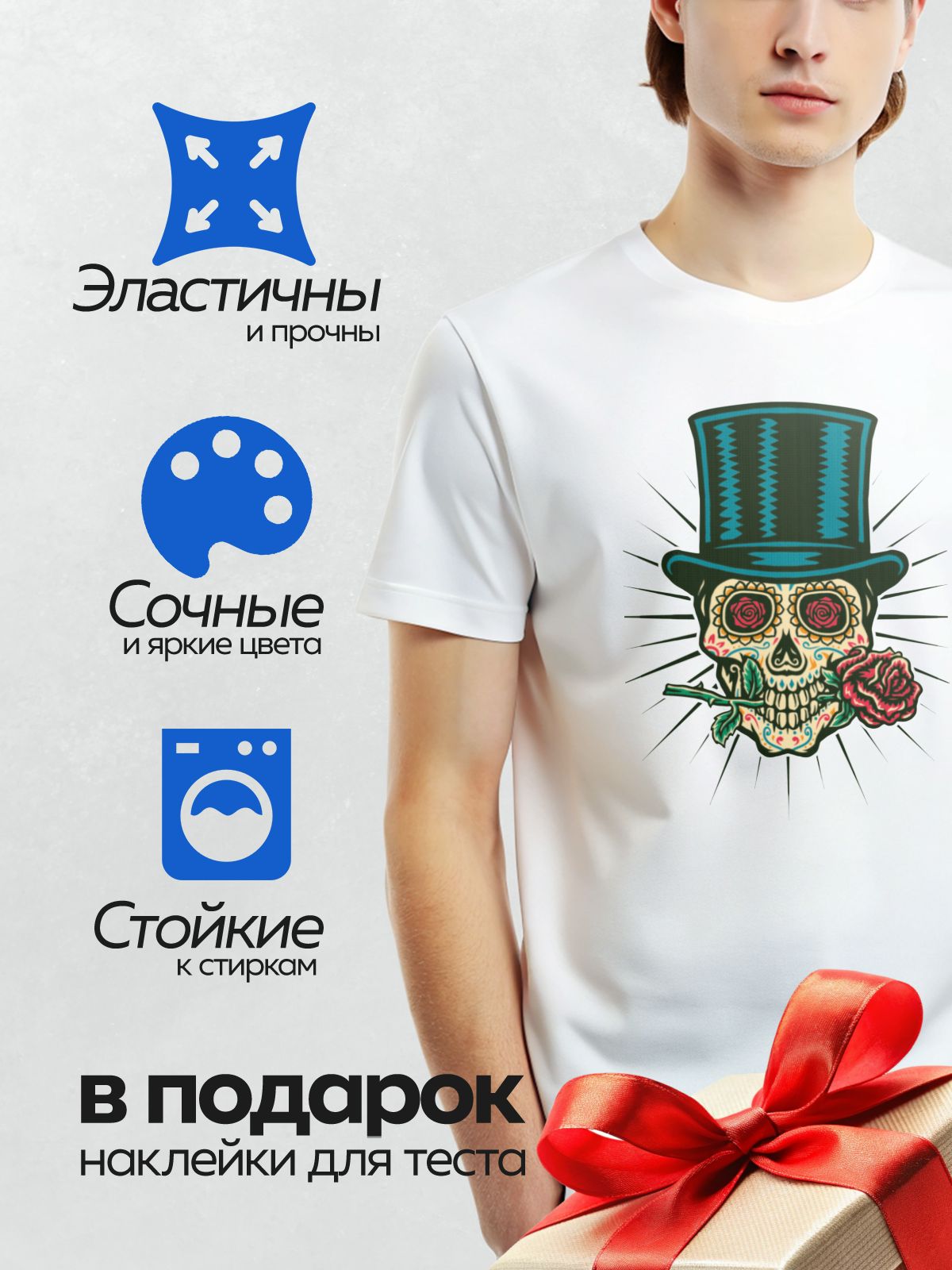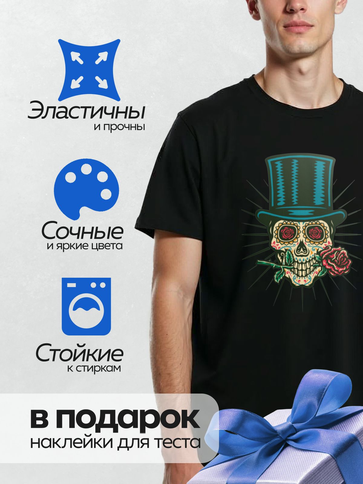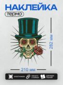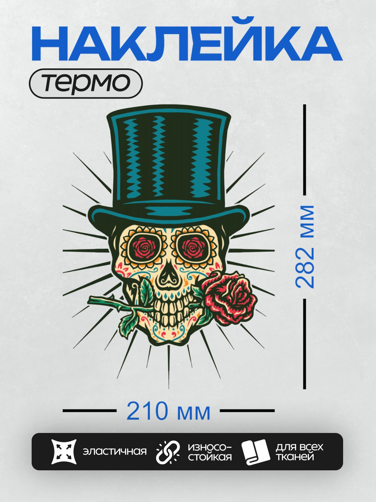 Дизайн: Сахарный череп в цилиндре с розой и яркими узорами. — идеально подходит для декора и восстановления одежды.