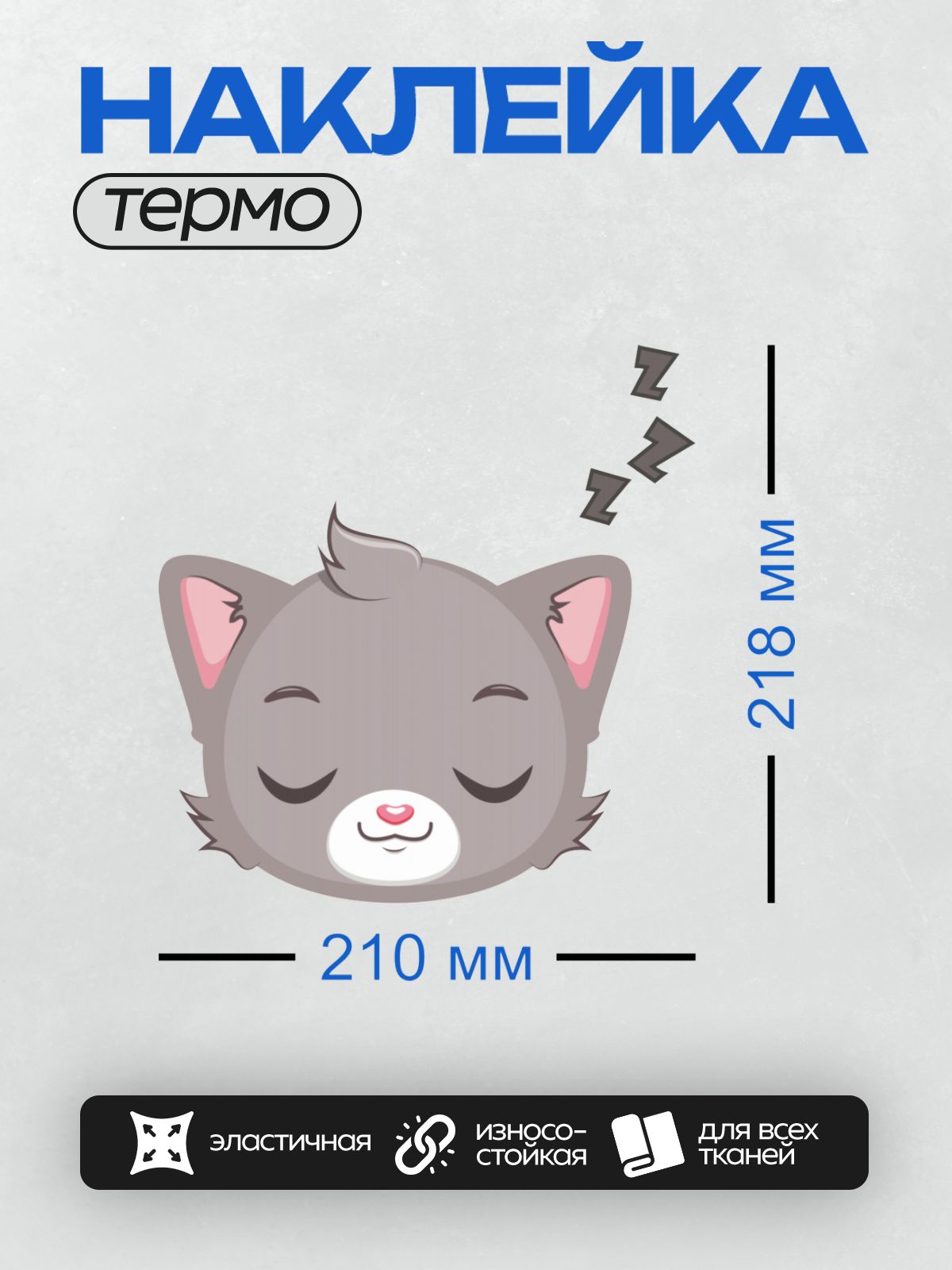 Дизайн: Серый мультяшный котёнок спит с сердечком на носу. — идеально подходит для декора и восстановления одежды.