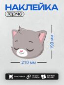 Дизайн: Серый мультяшный котёнок с закрытыми глазами. — идеально подходит для декора и восстановления одежды.
