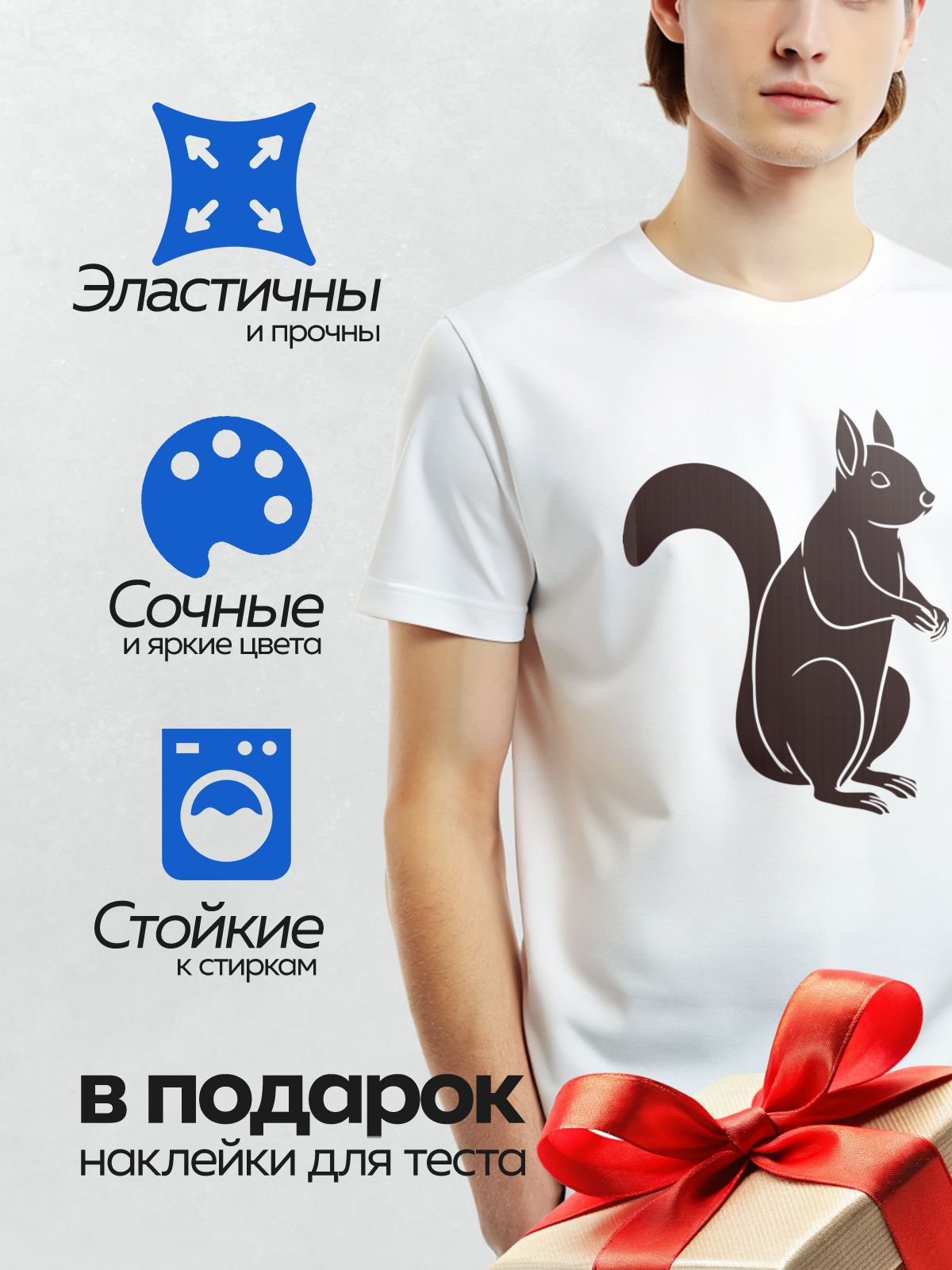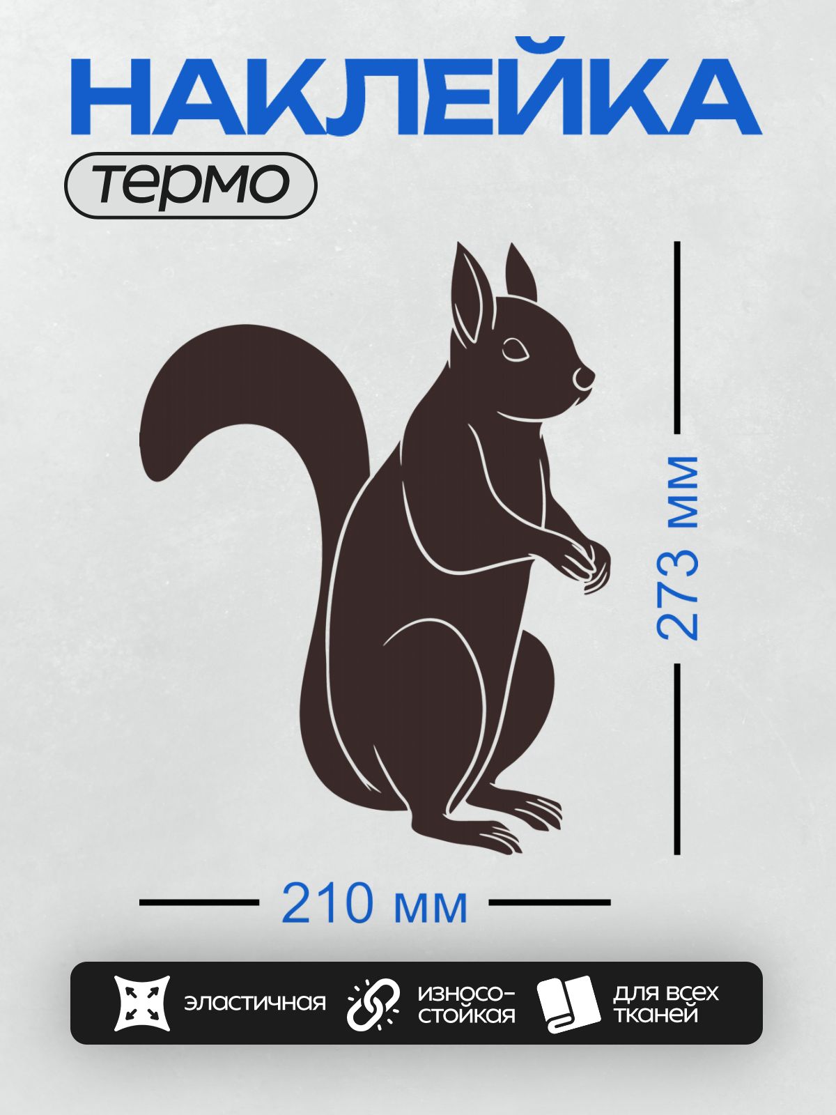 Термонаклейка на одежду DTF / Силуэт белки с пушистым хвостом на белом фоне.