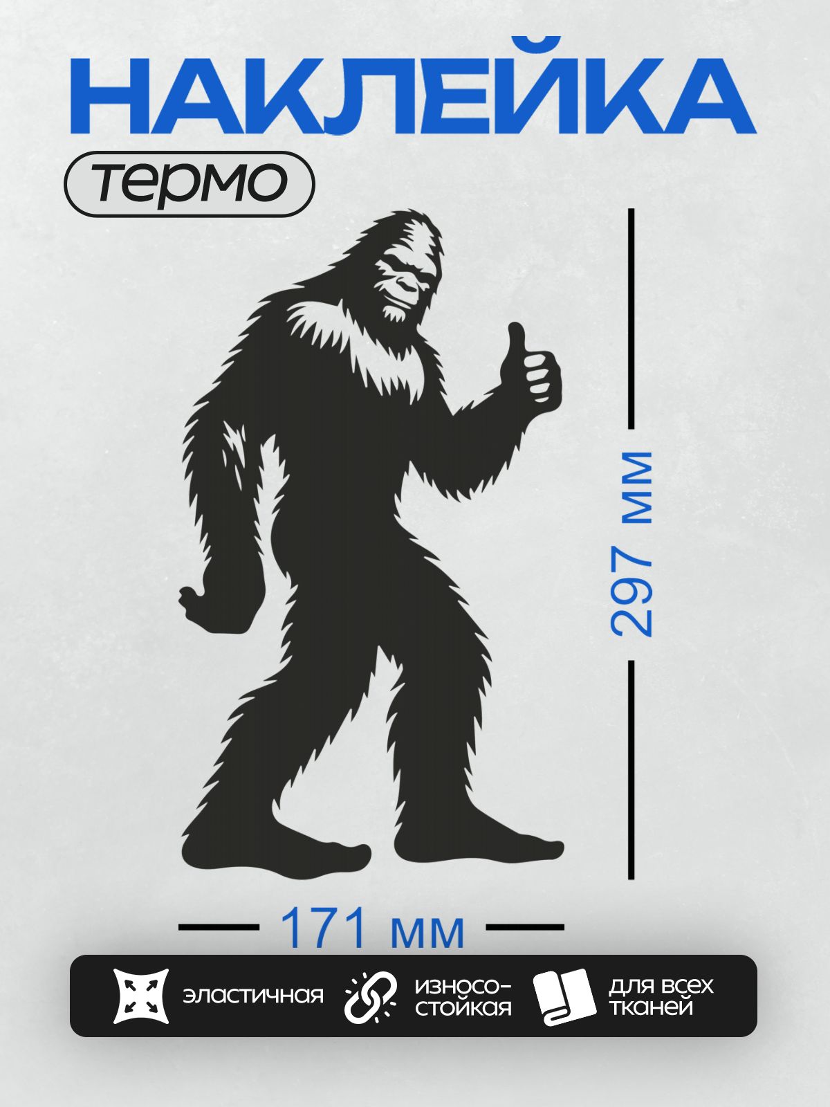 Дизайн: Силуэт Бигфута с поднятым вверх большим пальцем. — идеально подходит для декора и восстановления одежды.