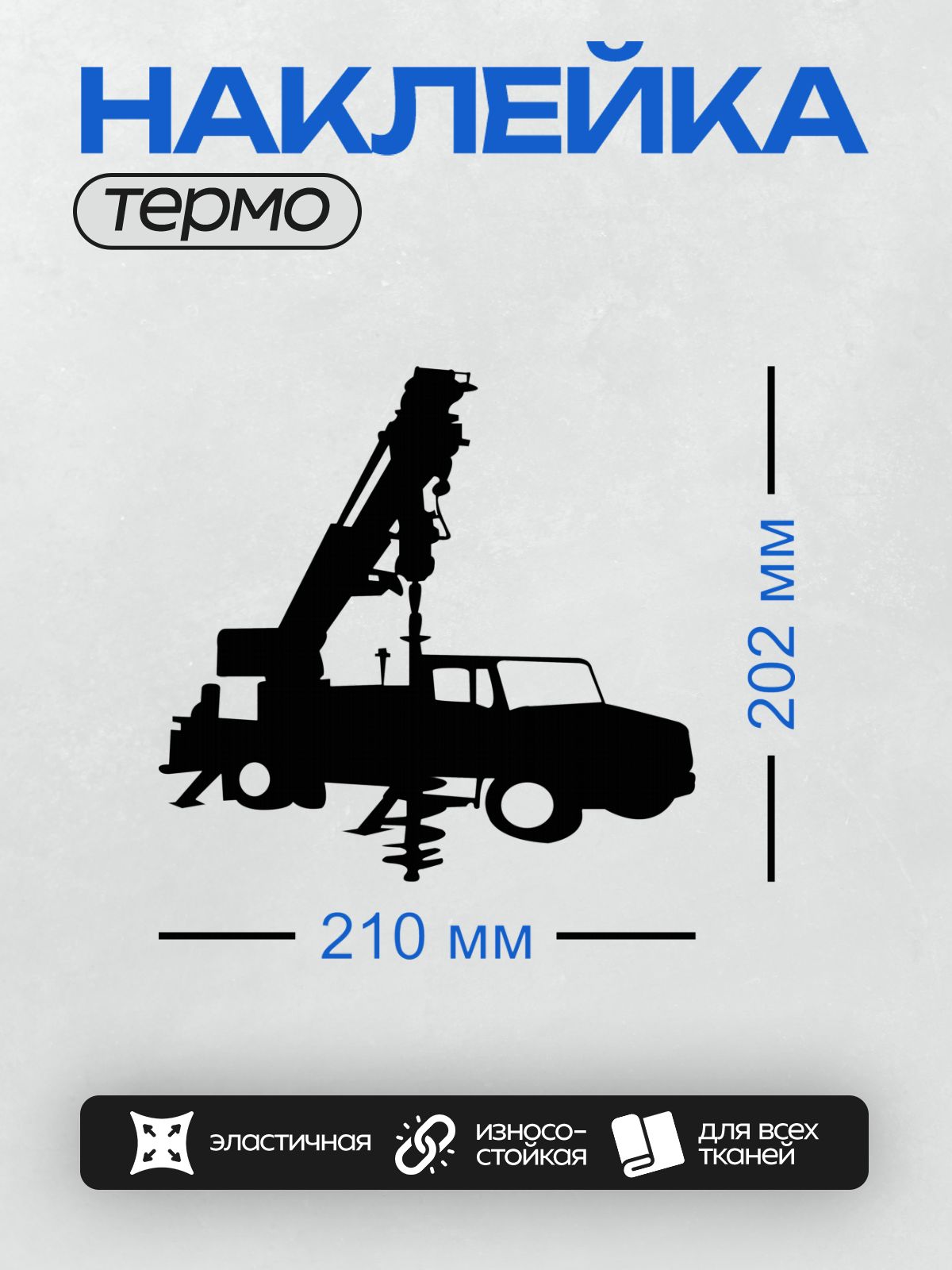 Дизайн: Силуэт буровой установки с буром на шасси грузовика. — идеально подходит для декора и восстановления одежды.