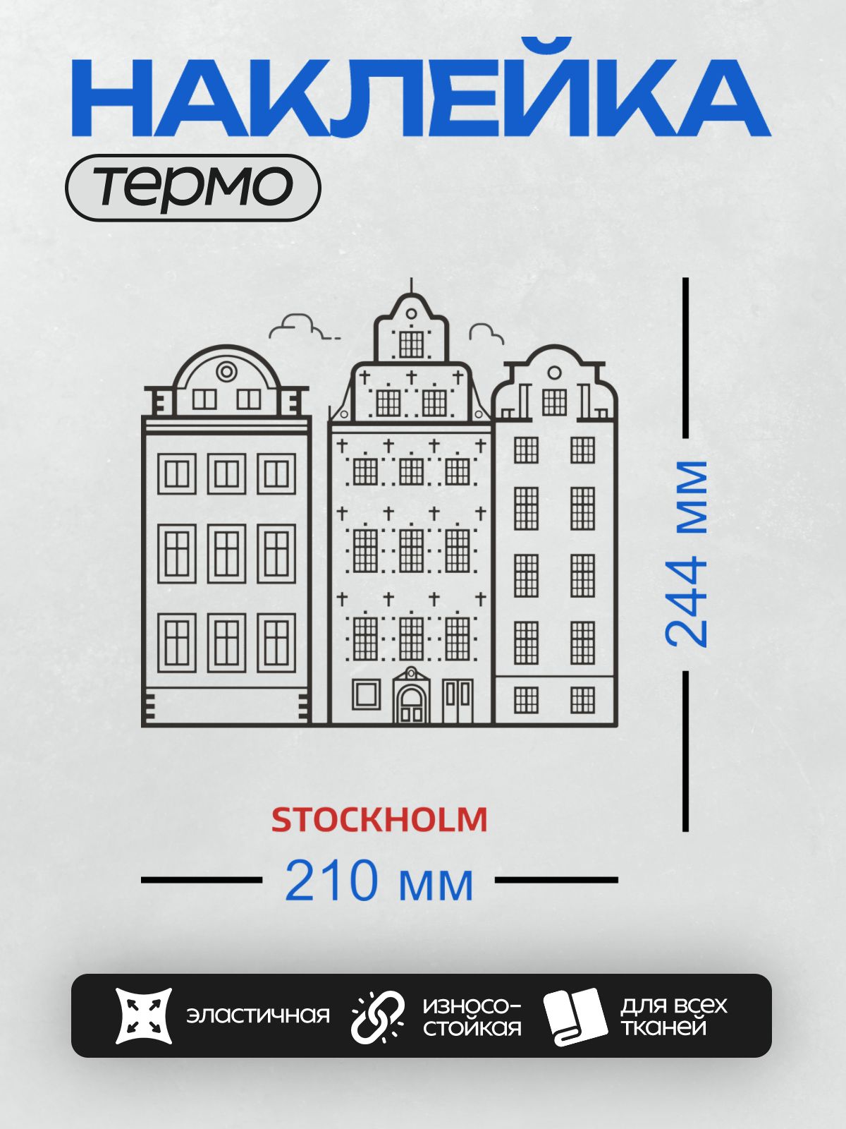 Термонаклейка на одежду DTF / Силуэт домов Стокгольма, архитектура города.