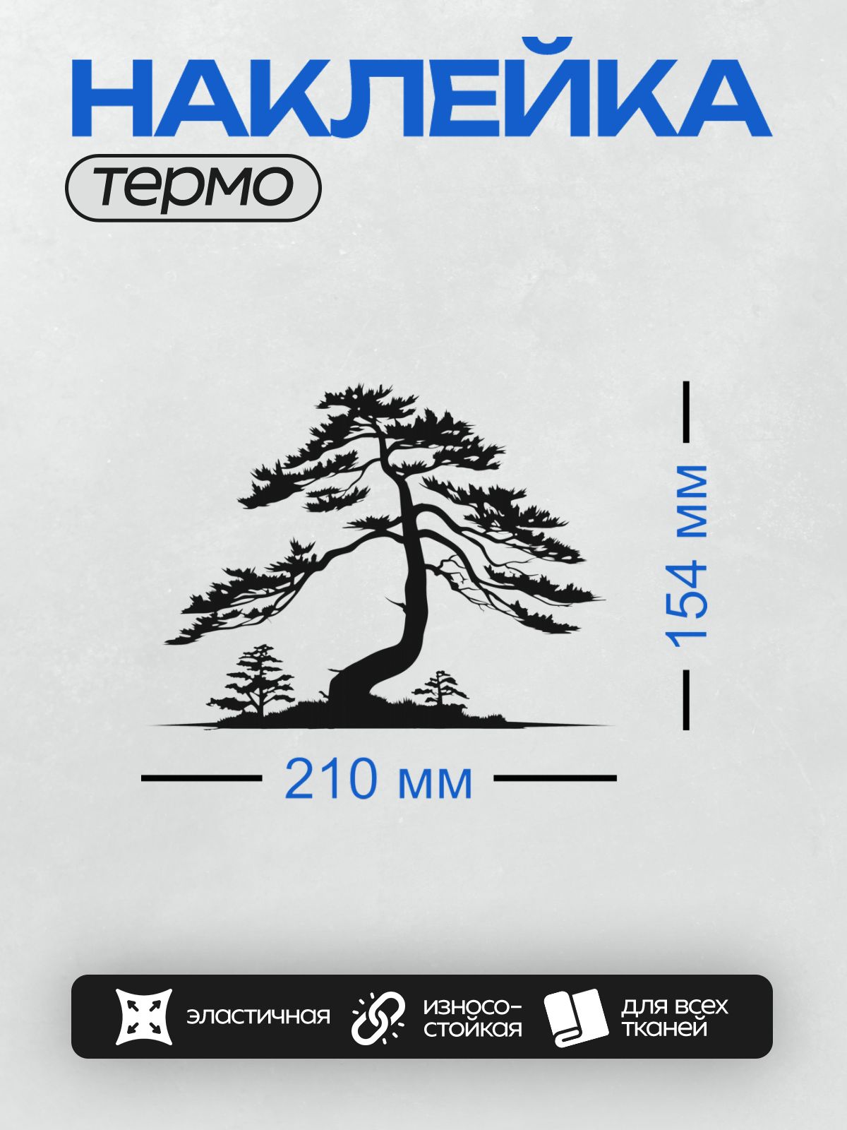 Дизайн: Силуэт сосны с изогнутым стволом и раскидистыми ветвями. — идеально подходит для декора и восстановления одежды.