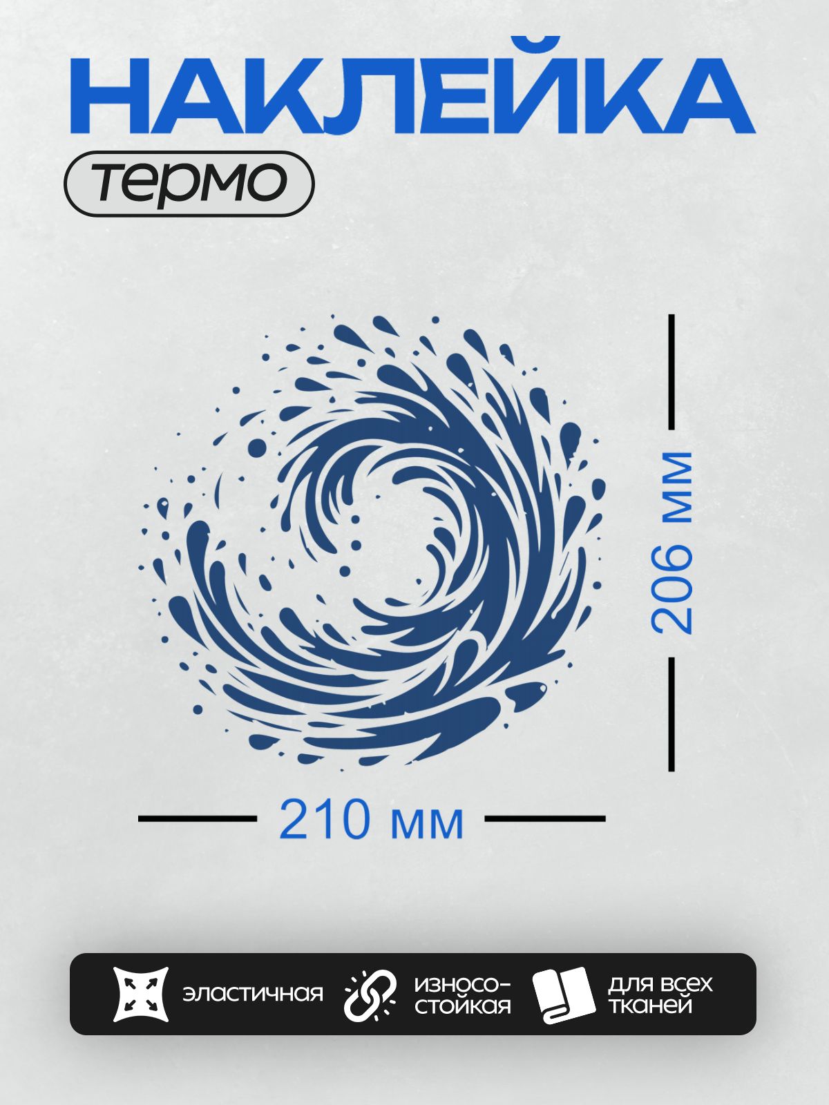 Дизайн: Синий водоворот с каплями воды на белом фоне. — идеально подходит для декора и восстановления одежды.