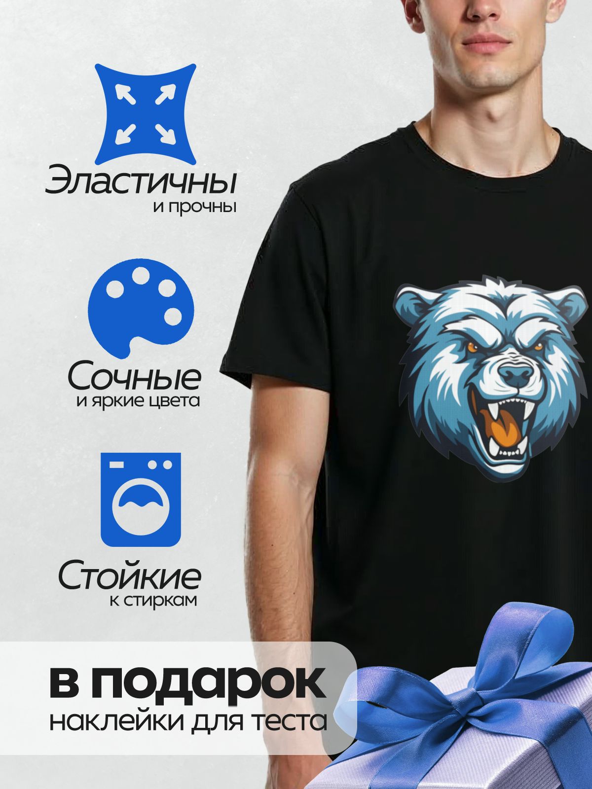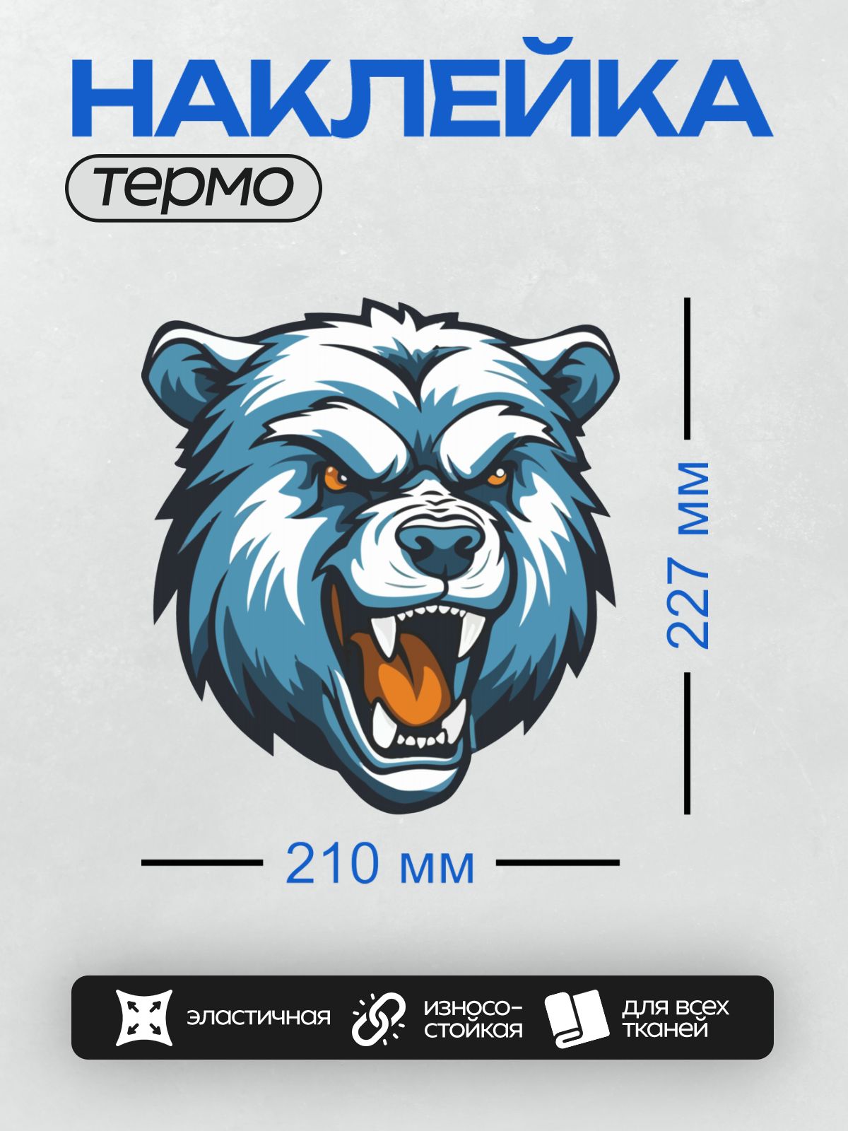 Дизайн: Синий медведь с открытой пастью и острыми зубами. — идеально подходит для декора и восстановления одежды.