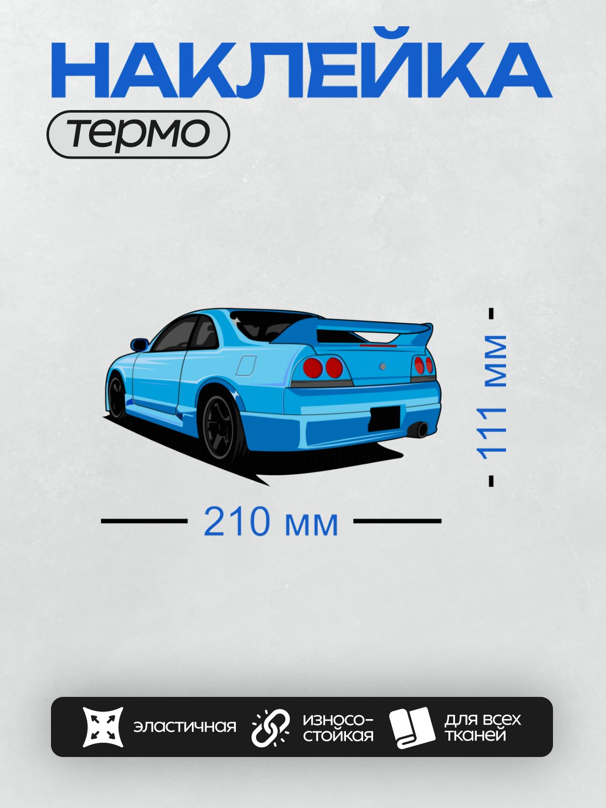 Термонаклейка на одежду DTF / Синий спортивный автомобиль Nissan Skyline R34 в мультяшном стиле.