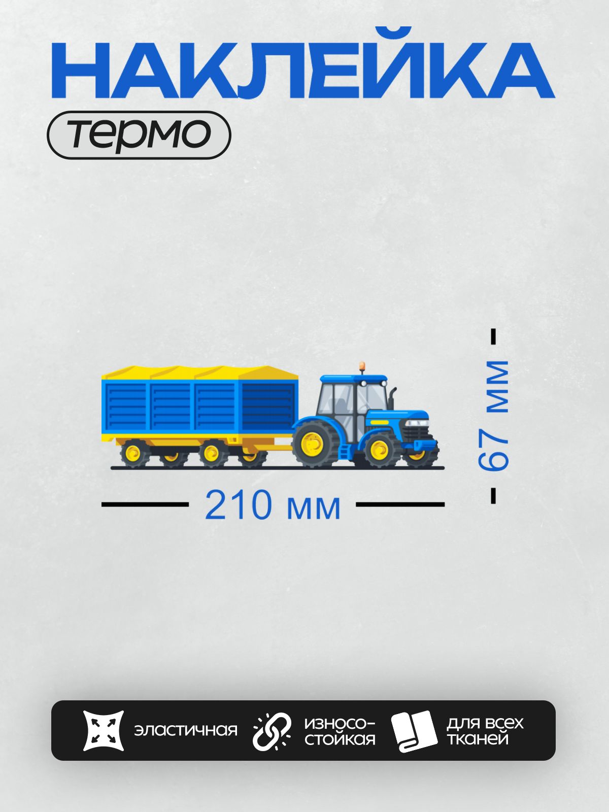 Термонаклейка на одежду DTF / Синий трактор с прицепом, мультяшный стиль.