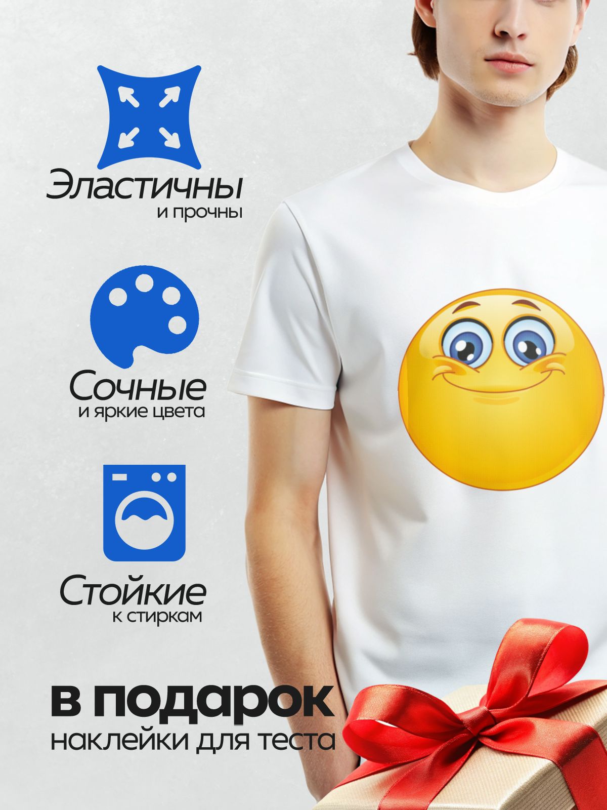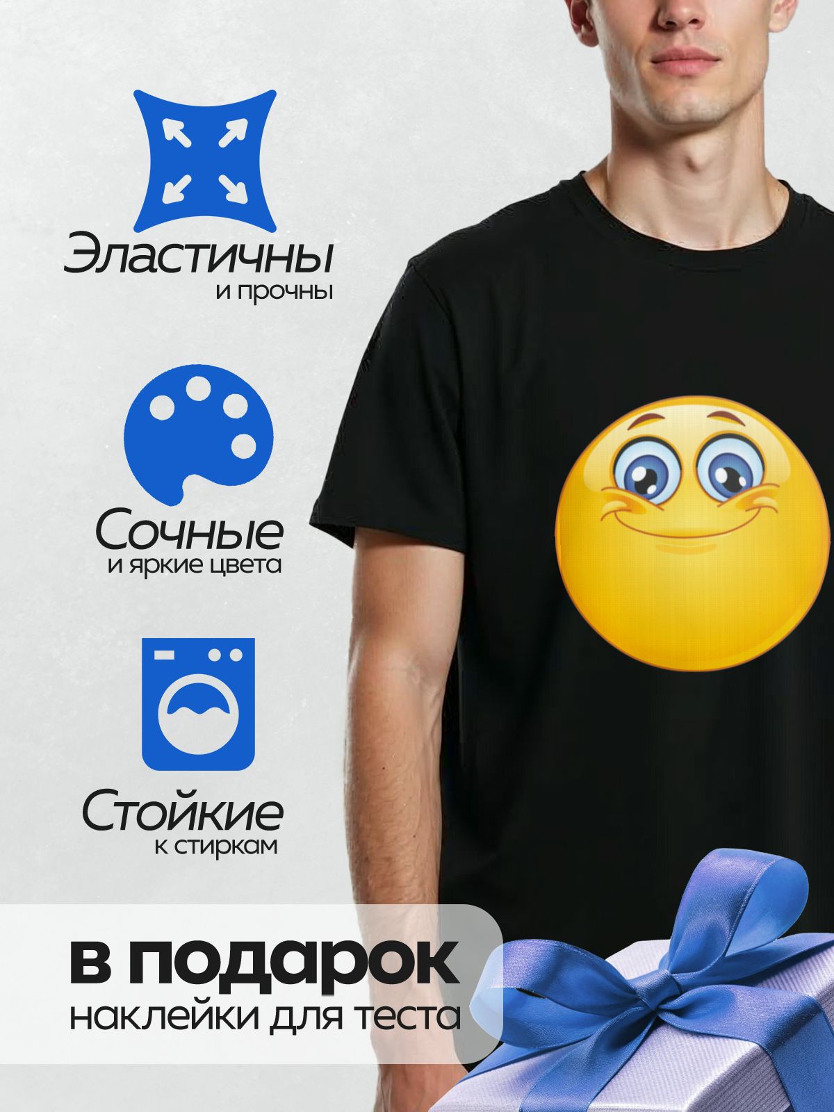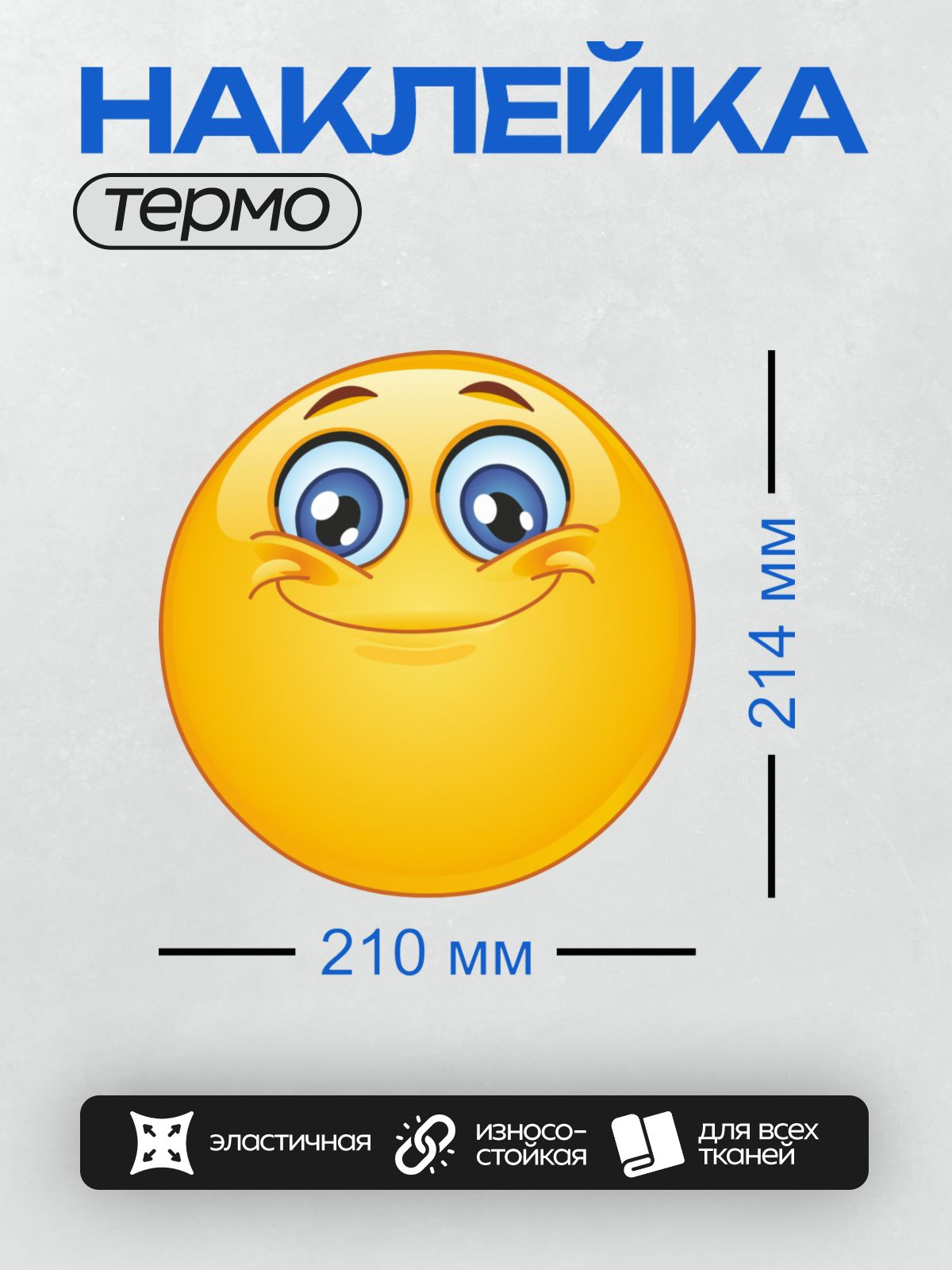 Термонаклейка на одежду DTF / Смайлик с застенчивой улыбкой и большими глазами.