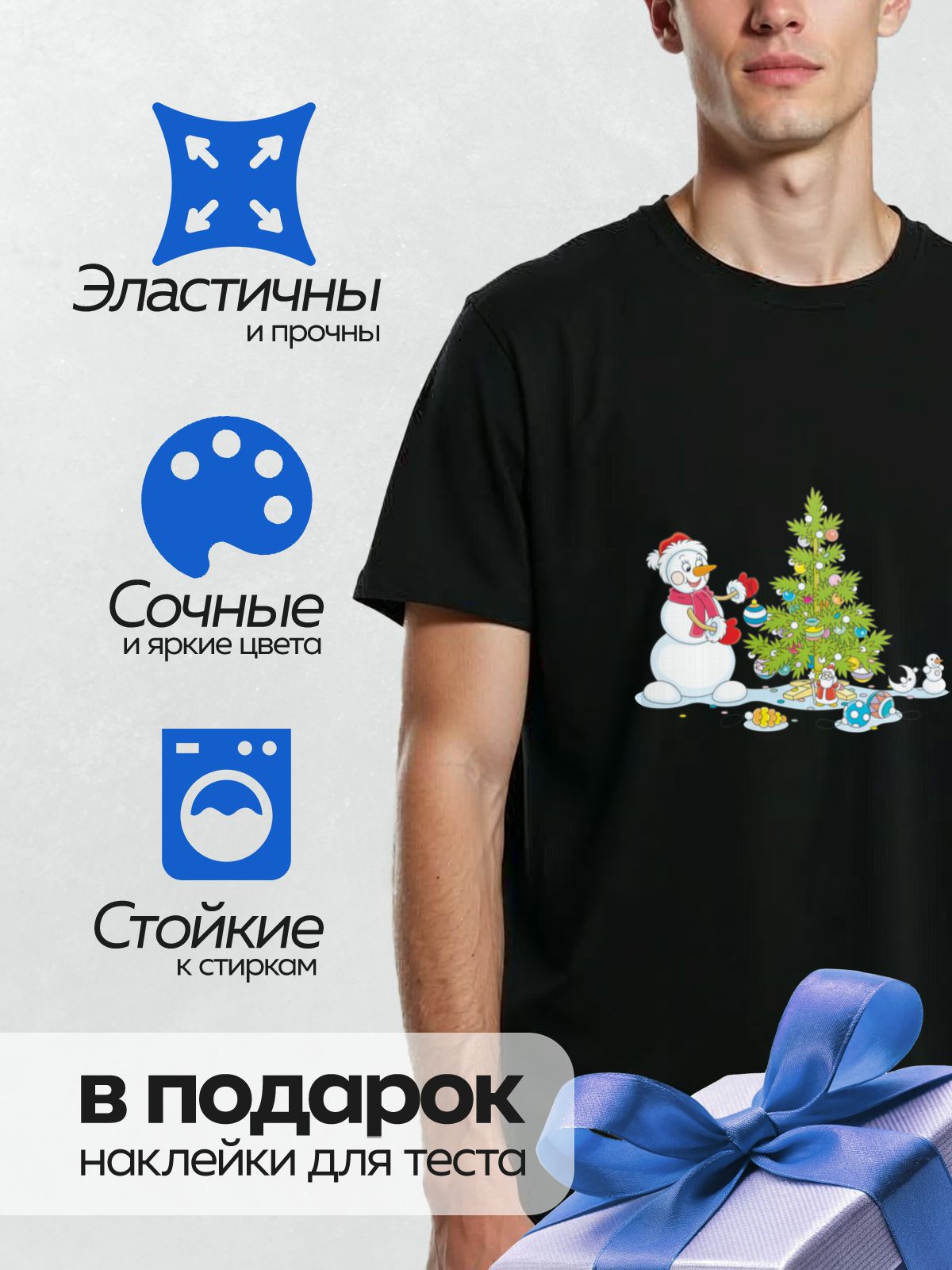 Дизайн: Снеговик украшает новогоднюю ёлку с Дедом Морозом. — идеально подходит для декора и восстановления одежды.