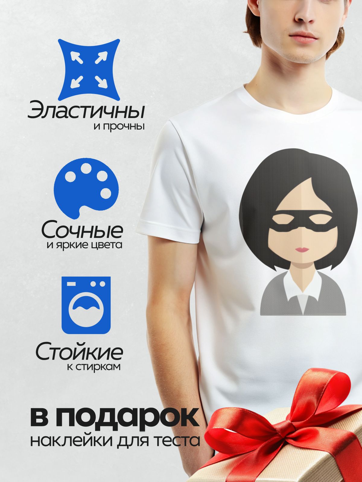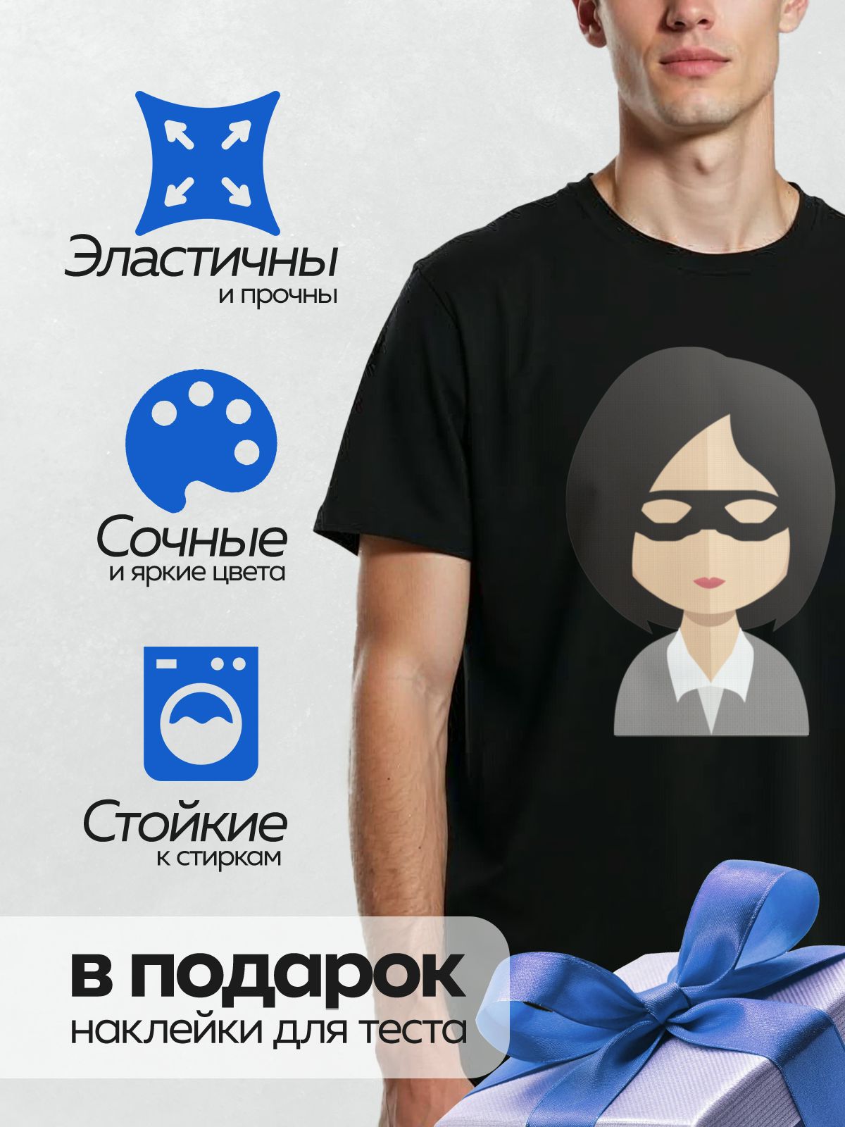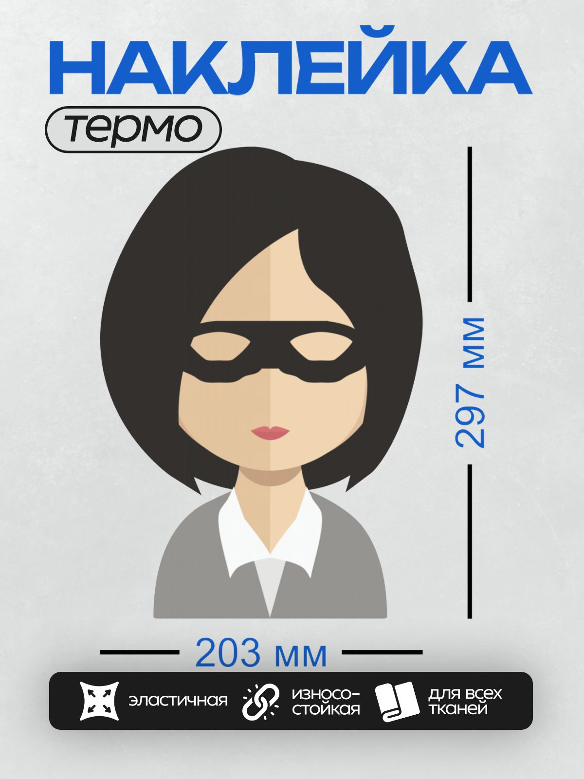 Термонаклейка на одежду DTF / Стилизованная женщина в маске и деловом костюме.