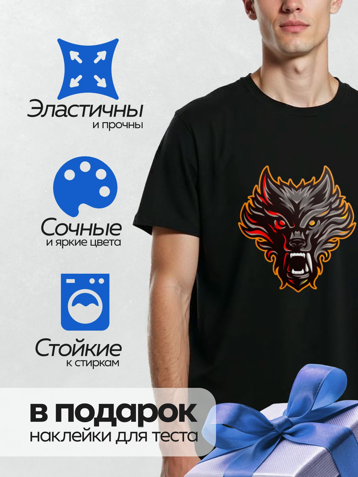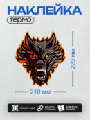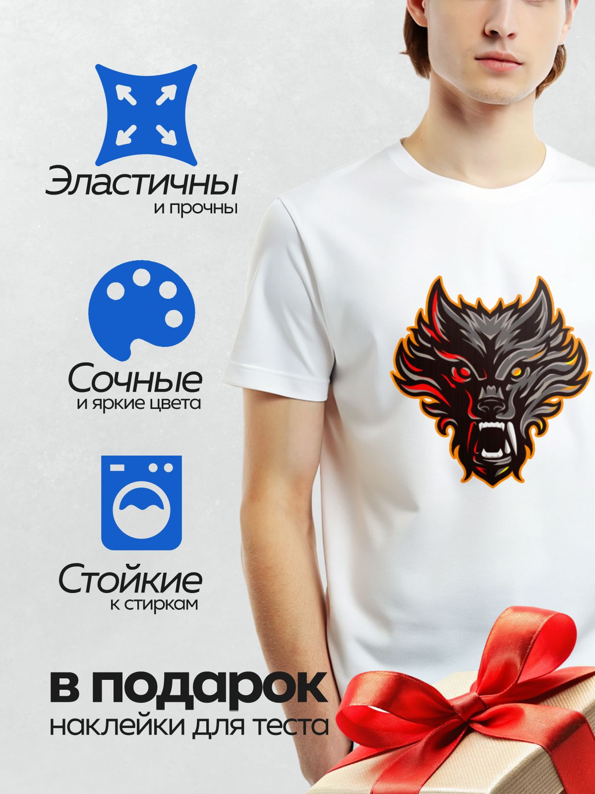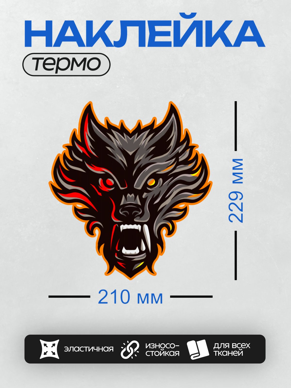 Термонаклейка на одежду DTF / Стилизованный волк с яркими глазами и огненной окантовкой.