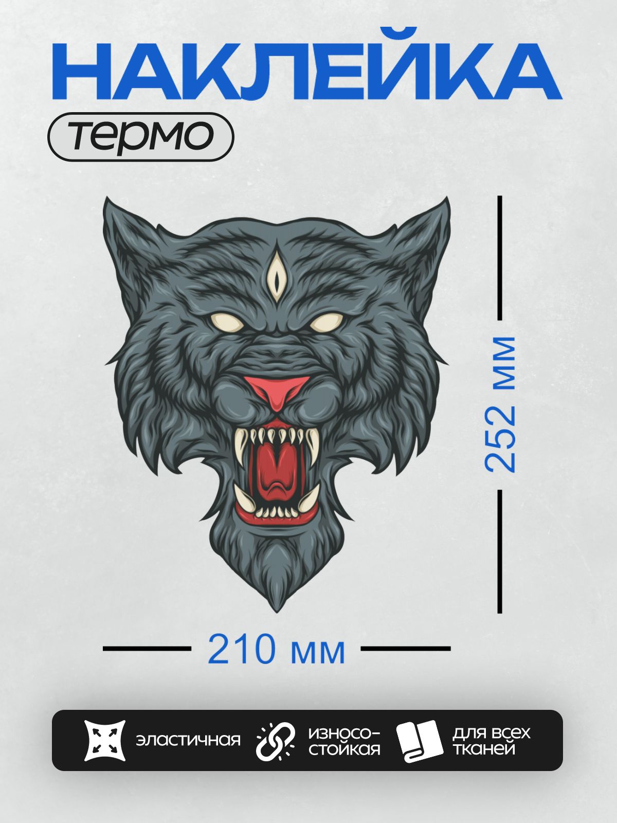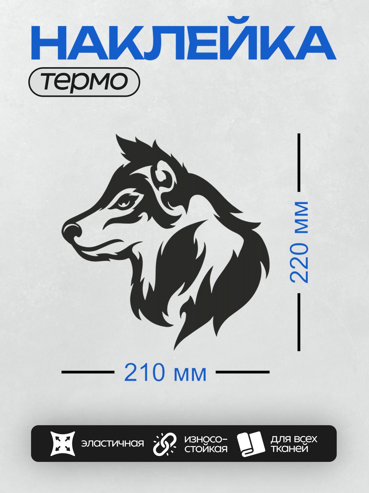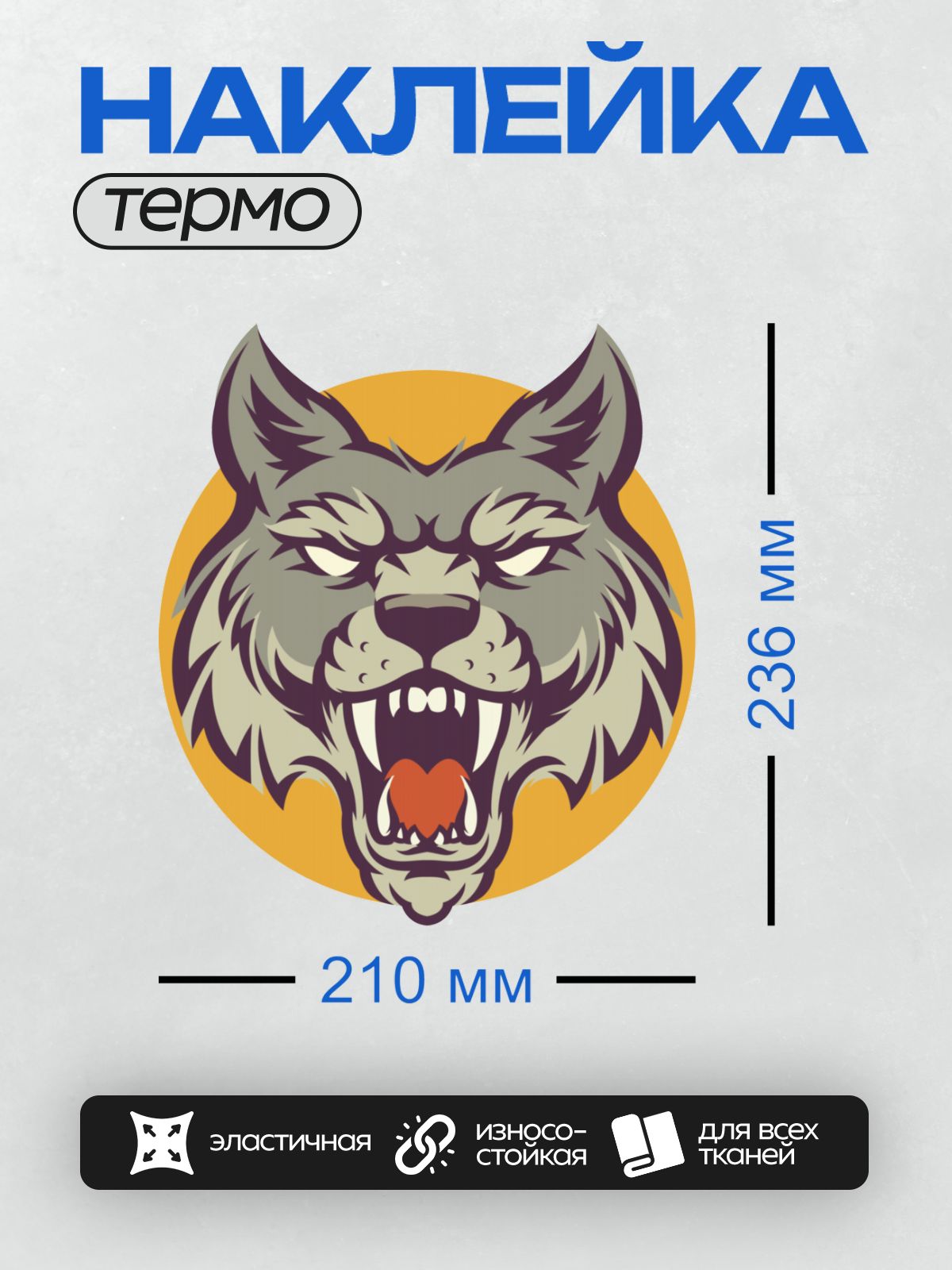 Термонаклейка на одежду DTF / Стилизованный волк с яркими глазами и огненной окантовкой.