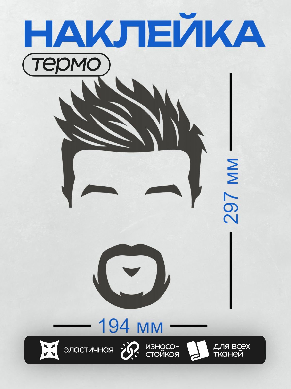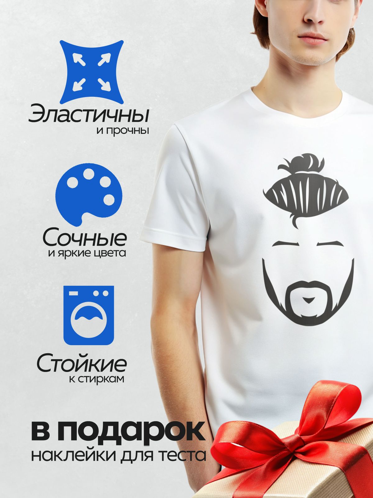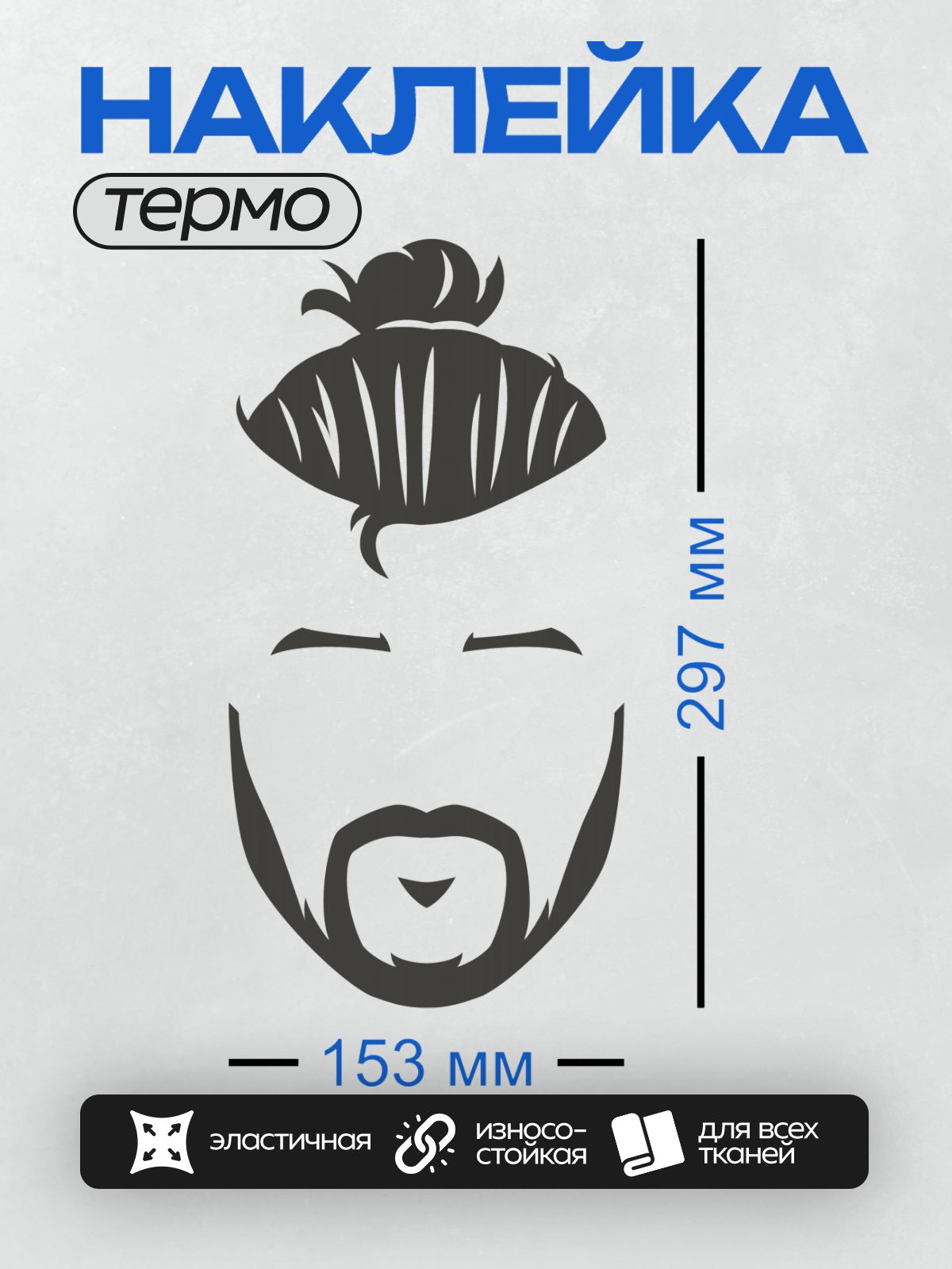 Термонаклейка на одежду DTF / Стилизованное лицо с бородой и пучком волос.