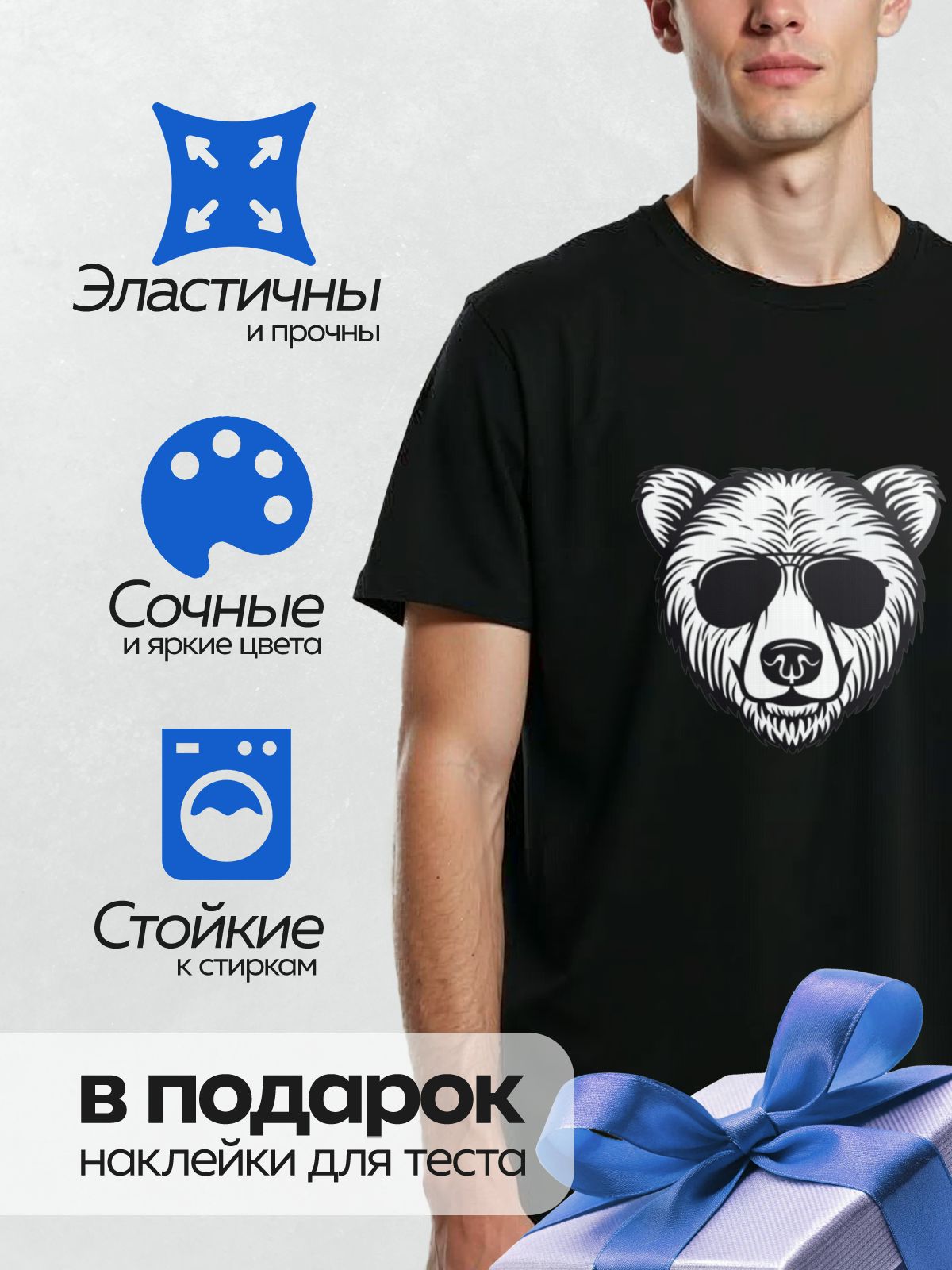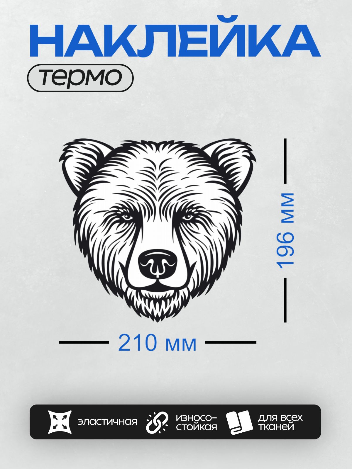 Термонаклейка на одежду DTF / Стилизованный черно-белый силуэт головы медведя.