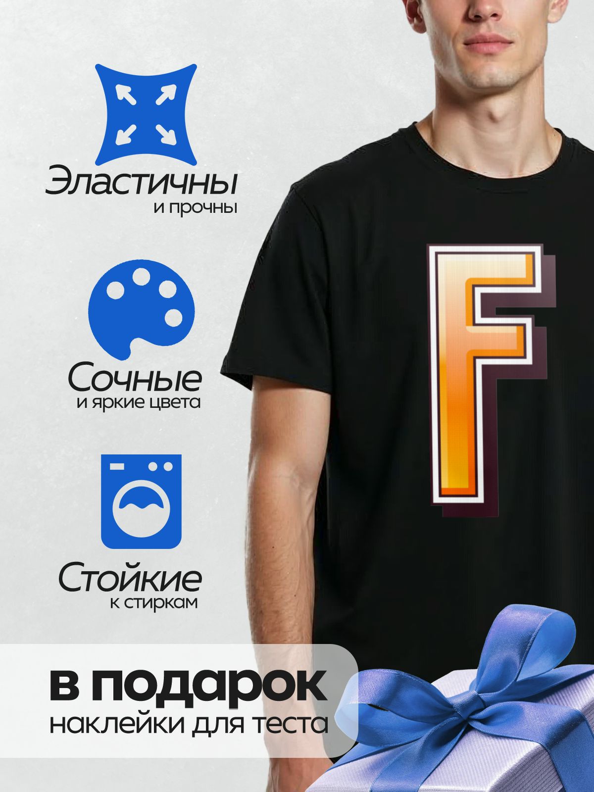 Термонаклейка на одежду DTF / Стилизованная буква “F” в оранжево-белой гамме.