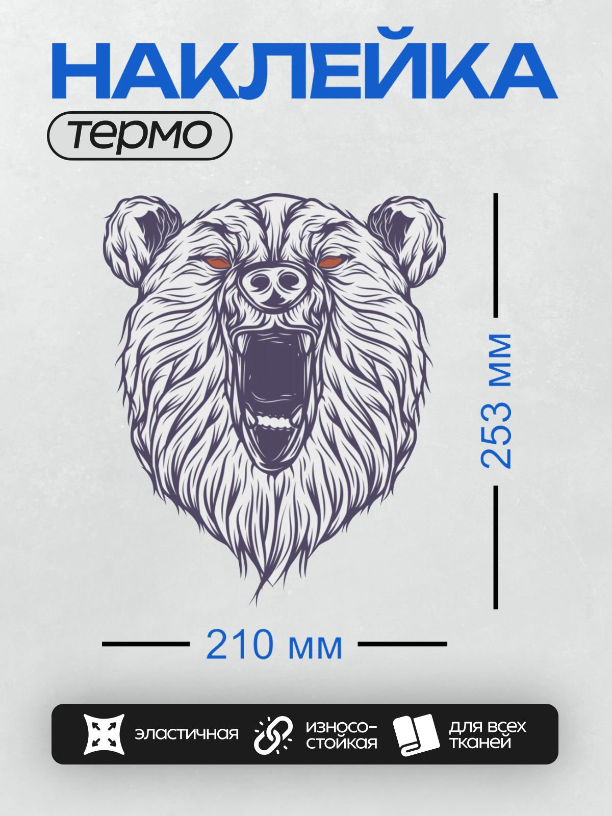 Дизайн: Стилизованный оскал головы медведя. — идеально подходит для декора и восстановления одежды.
