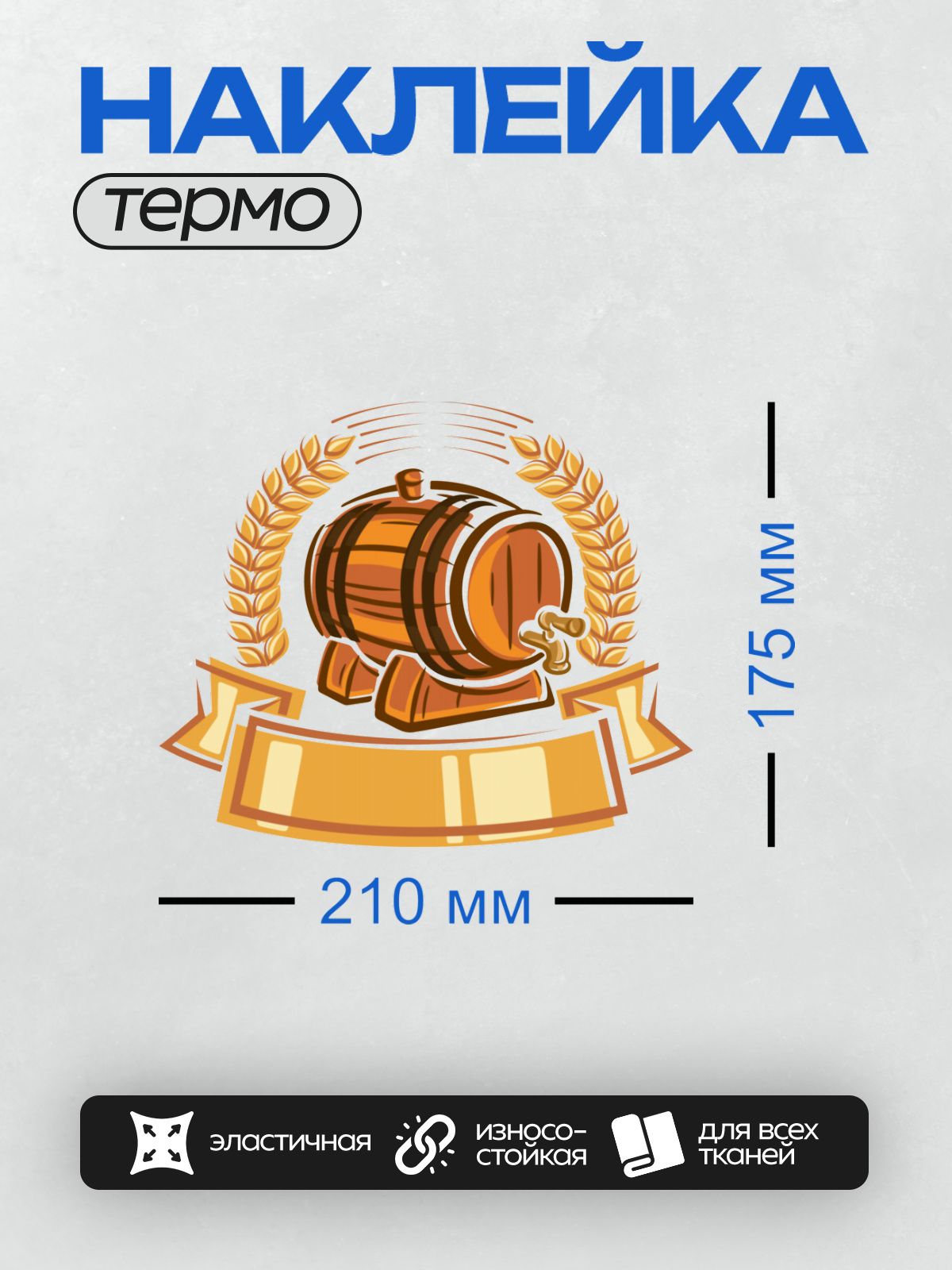 Дизайн: Стилизованная пивная бочка с краном и венком из колосьев. — идеально подходит для декора и восстановления одежды.