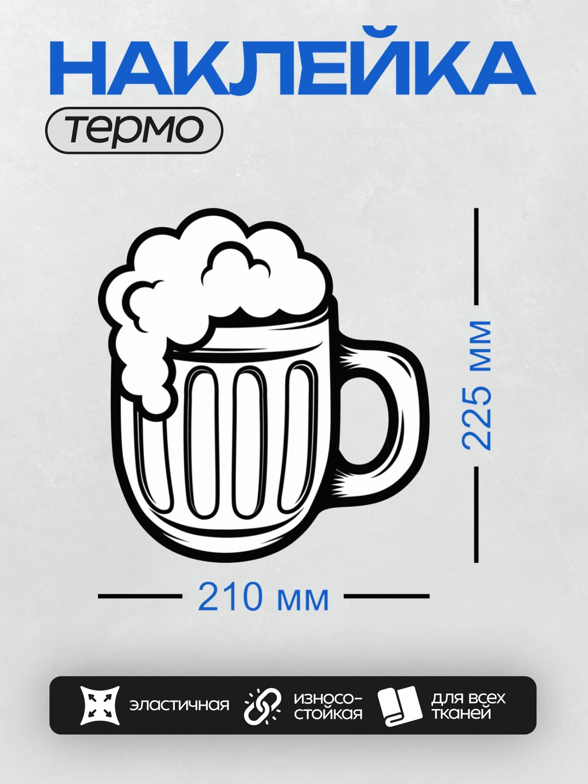 Дизайн: Стилизованная пивная кружка с пеной. — идеально подходит для декора и восстановления одежды.