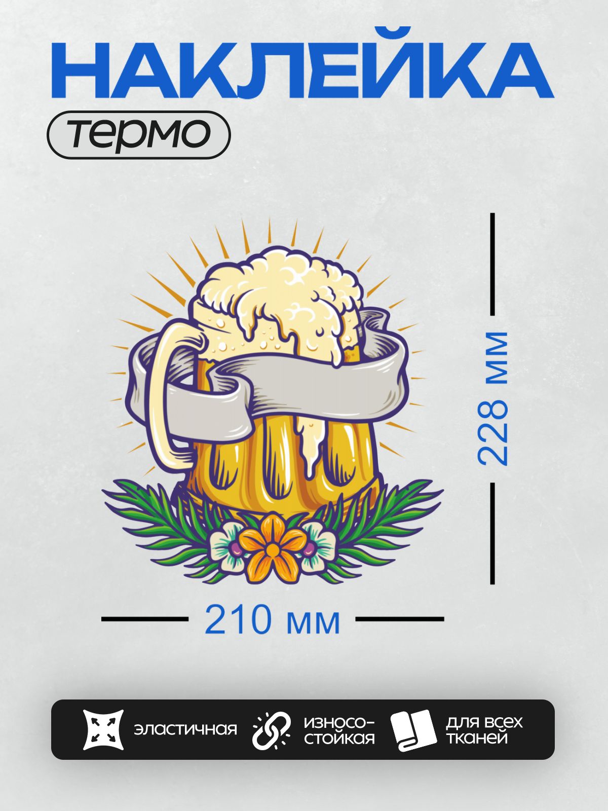 Дизайн: Стилизованная пивная кружка с пеной и цветами. — идеально подходит для декора и восстановления одежды.