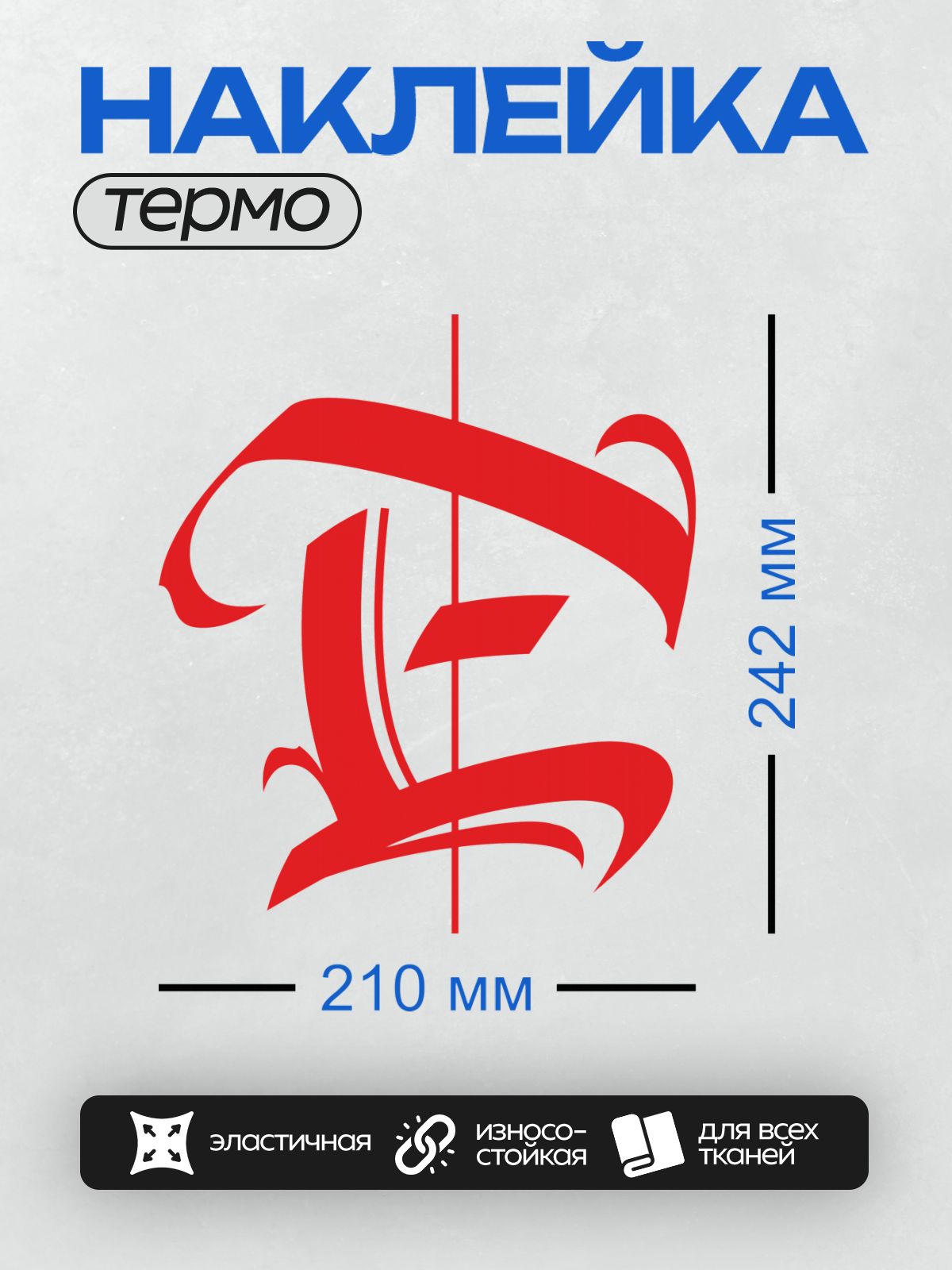 Термонаклейка на одежду DTF / Стилизованная буква “L” в готическом стиле, ярко-красная.