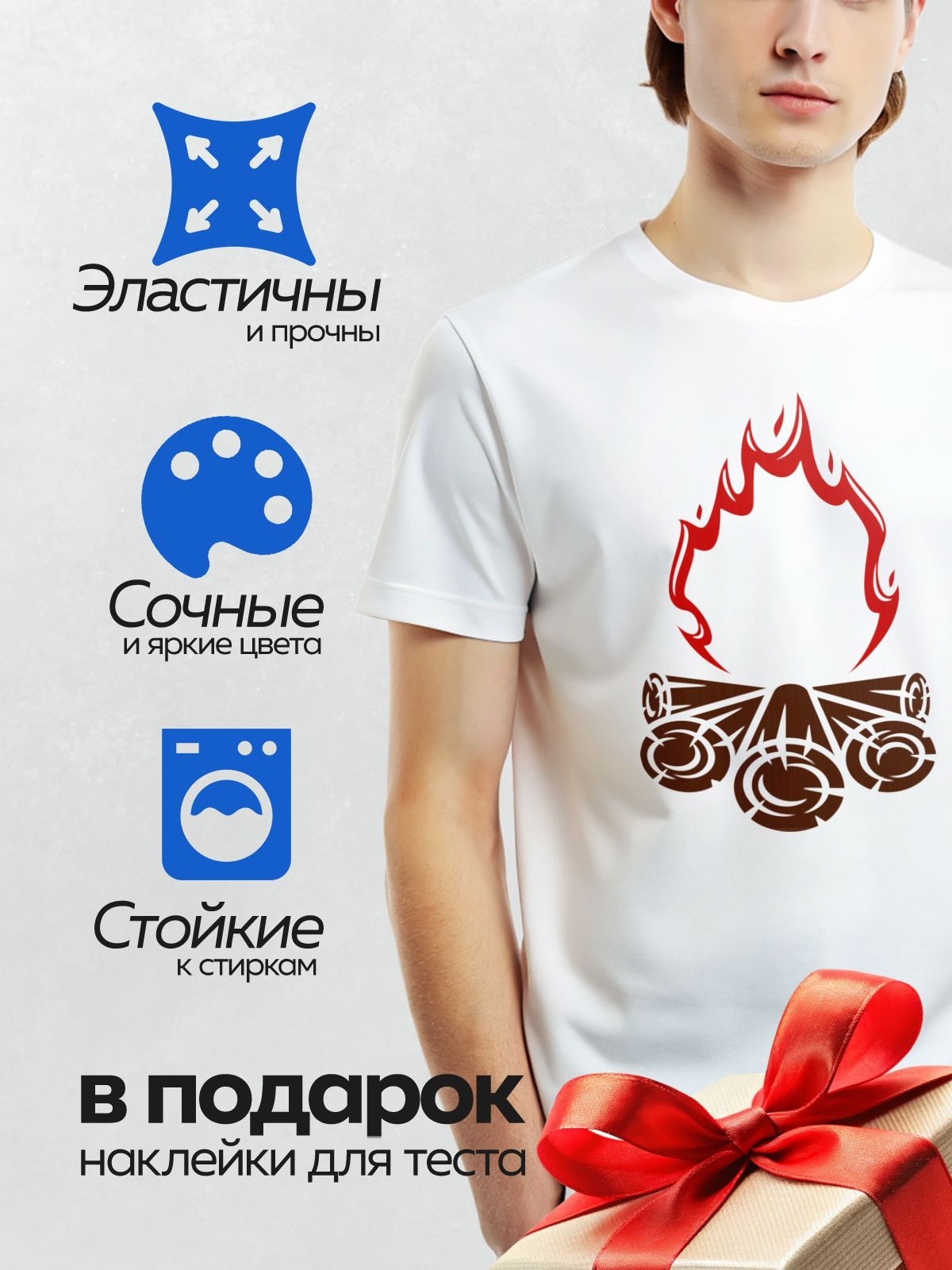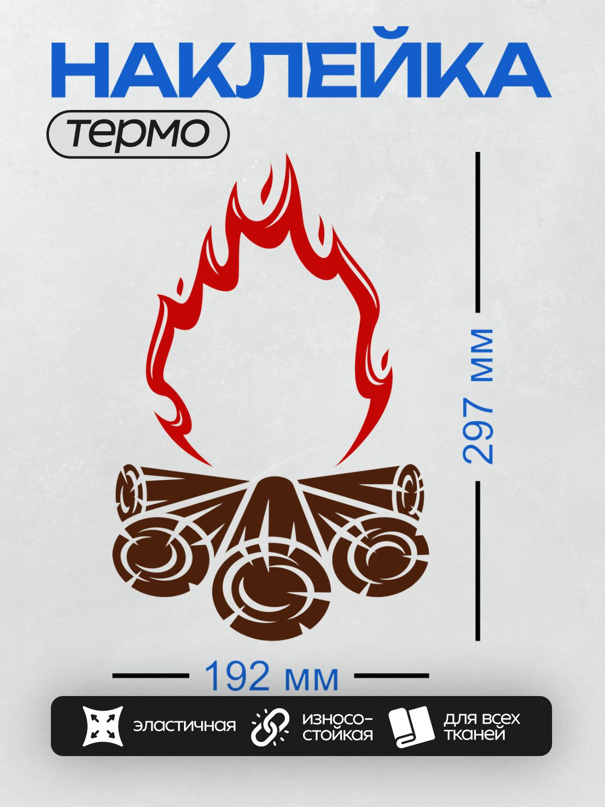 Термонаклейка на одежду DTF / Стилизованный костёр с ярким пламенем и брёвнами.